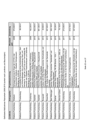 Geförderte Maßnahmen Radverkehr 2008-2019 (sortiert nach Landkreis und Bescheidjahr) Landkreis Antragsteller Projektbezeichnung Bescheid- Zuwendung jahr Waldeck-Frankenberg Bad Wildungen Bau eines Gehweges zwischen Altwildungen und 2018 152.000 € Reitzenhagen Waldeck-Frankenberg Diemelstadt Fuß- und Radwegekonzept Diemelstadt 2018 18.900 € Waldeck-Frankenberg Frankenberg Fuß- und Radwegekonzept Frankenberg 2018 18.700 € (Eder) Waldeck-Frankenberg Hatzfeld (Eder) Radwegeanbindung von Holzhausen an den R8; 2018 34.500 € Planungsleistungen Waldeck-Frankenberg Haina (Kloster) Radwegekonzept der Stadt Gemünden, der Gemeinde 2018 8.000 € Haina und der Stadt Frankenau Waldeck-Frankenberg Bad Wildungen Radwegnetzanalyse Bad Wildungen und Stadtteile 2018 7.200 € Waldeck-Frankenberg Edertal Neubau Rad-Gehweg, R6 DB-Strecke - K34, 2. BA 2019 192.700 € Waldeck-Frankenberg Haina Radwegekonzept der Gemeinde Haina, der Stadt 2019 12.000 € Gemünden und der Stadt Frankenau Waldeck-Frankenberg Bad Wildungen Nahmobilitätskonzept Bad Wildungen 2019 24.000 € Waldeck-Frankenberg Burgwald Lückenschluss Lahn-Eder-Radweg 2019 71.100 € Waldeck-Frankenberg Landkreis Erstellung eines kreisweiten Radwegekonzeptes 2019 64.400 € Waldeck- Frankenberg Werra-Meissner-Kreis Großalmerode Ausbau eines Radweges zwischen der Erbsmühle und 2009 102.700 € Großalmerode Werra-Meissner-Kreis Meißner Rad-/Gehweg entl. d. L3334, Germerode/Rodebach 2. 2009 196.800 € Bauabschnitt Werra-Meissner-Kreis Waldkappel Neubau Radweg zwischen d. Stadtteil Friemen u. 2016 184.700 € Kläranlage Schemmergrund Werra-Meissner-Kreis Zweckverband Rad-Verbindungsweg Nentershausen-Weißenhasel- 2016 448.800 € InKomZ Sontra (Hornel), Haseltalradweg Werra-Meissner-Kreis Witzenhausen Ausbau Radweg zwischen Blickershausen und 2018 60.000 € Ziegenhagen Werra-Meissner-Kreis Eschwege Ausbau Straßenverbindung zwischen B452 u. L3424 2018 325.800 € Werra-Meissner-Kreis Witzenhausen Ersatzneubau der Radfahrer-/ Fußgängerbrücke im 2018 152.000 € Zuge des Werratal-Radweges bei Unterrieden Werra-Meissner-Kreis Berkatal Radwegekonzept für die Gemeinde Berkatal 2018 7.800 € Seite 23 von 27