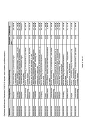 Geförderte Maßnahmen Radverkehr 2008-2019 (sortiert nach Landkreis und Bescheidjahr) Landkreis Antragsteller Projektbezeichnung Bescheid- Zuwendung jahr Wetteraukreis Butzbach Limesradweg Neubau Querverbindungen 2011 290.100 € (3.Bauabschnitt) Wetteraukreis Friedberg Ausbau Gehwege in Ortsdurchfahrt Ockstadt; L3134 2012 267.700 € Wetteraukreis Butzbach Limesradweg Neubau Hauptroute (4.Bauabschnitt) 2012 942.000 € Wetteraukreis Butzbach Limesradweg Neubau Querverbindungen 2012 1.022.900 € (4.Bauabschnitt) Wetteraukreis Zweckverband Ausbau Niddaradweg, 3.Bauabschnitt-B, Bad Vilbel - 2013 862.600 € Niddaradweg Florstadt-Staden Wetteraukreis Butzbach Limesradweg, Hauptroute, 5.Bauabschnitt, Bauwerk, 2013 556.600 € Ausbau der Brücke über die Wetter in Trais Wetteraukreis Butzbach Limesradweg, Querverbindungen, 5.Bauabschnitt 2013 297.000 € Wetteraukreis Limeshain Umbau Bushaltestelle u. Rad-u. Gehweg am 2013 168.400 € Knotenpunkt L3189/L3347 Wetteraukreis Butzbach Limesradweg, Hauptroute, 6.Bauabschnitt (Teil 1 + 2) 2014 551.900 € Wetteraukreis Friedberg Neubau Radweg Regionalparkroute West 1. 2014 305.700 € Bauabschnitt Wetteraukreis Karben Radwegeausbau in Karben/Petterweil 2014 421.800 € Wetteraukreis Wetteraukreis K184, Neubau Radweg zwischen Ober-Widdersheim 2014 34.400 € und B455 Wetteraukreis Zweckverband Ausbau Niddaradweg 3. Bauabschnitt-C, Bad Vilbel - 2015 427.500 € Niddaradweg Florstadt-Staden Wetteraukreis Butzbach Limesradweg, Hauptroute, 6. Bauabschnitt (Teil 3) 2015 332.900 € Wetteraukreis Butzbach Limesradweg, Querverbindungen, 6. Bauabschnitt 2015 98.000 € Wetteraukreis Büdingen Neubau Rad- und Gehweg, L3195, zwischen 2015 222.700 € Hammersbach und Büdingen Wetteraukreis Friedberg Neubau Radweg Regionalparkroute West 2. 2015 194.000 € Bauabschnitt Wetteraukreis Wetteraukreis Ausbau Limesradweg Altenstadt - Nidda/Unter- 2016 453.517 € Widdersheim, 1. Bauabschnitt Wetteraukreis Echzell Ausbau Limesradweg zwischen Reichelsheim und 2016 176.519 € Echzell 2. Bauabschnitt Wetteraukreis Zweckverband Ausbau Niddaradweg 3. Bauabschnitt-D, Bad Vilbel - 2016 722.300 € Niddaradweg Florstadt-Staden Seite 25 von 27