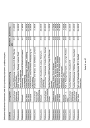 Geförderte Maßnahmen Radverkehr 2008-2019 (sortiert nach Landkreis und Bescheidjahr) Landkreis Antragsteller Projektbezeichnung Bescheid- Zuwendung jahr Wetteraukreis Zweckverband Ausbau Niddaradweg 4. Bauabschnitt, Bad Vilbel bis 2017 513.400 € Niddaradweg Florstadt-Staden Wetteraukreis Wetteraukreis K246, Ausbau inklusive Radweg zwischen Groß- 2017 106.600 € Karben und Kreisgrenze Wetteraukreis Butzbach Limesradweg 7. Bauabschnitt Römerturm-Limeshof 2017 67.400 € und Wegweisung Wetteraukreis Bad Vilbel Ausbau des Plattenweges im Stadtteil Heilsberg 2018 264.300 € Wetteraukreis Bad Vilbel Ausbau Geh-/Radweg Quellenpark 2018 843.000 € Wetteraukreis Altenstadt Ausbau Radweg zwischen Ortsteil Waldsiedlung und 2018 138.500 € Vulkanradweg Wetteraukreis Zweckverband Ersatzneubau einer Brücke über die Nidda in Dortelweil 2018 84.800 € Regionalpark Niddatalradweg Wetteraukreis Butzbach Limesradweg 8. Bauabschnitt Ausbau Römerturm- 2018 488.000 € Holzheimer Wetteraukreis Zweckverband Lückenschluss Vulkanradweg in Gedern/Ober-Seemen 2018 309.600 € Oberes Niddertal Wetteraukreis Karben Neubau Radweg L3351 zwischen Burg-Gräfenrode- 2018 414.000 € Ilbenstadt Wetteraukreis Wetteraukreis Planung Ausbau "kurze Wetterau" 2018 63.700 € Wetteraukreis Nidderau Umgestaltung der Konrad-Adenauer-Allee 2018 151.900 € Wetteraukreis Altenstadt Ersatzneubau einer Brücke über die Nidder 2019 66.500 € Wetteraukreis Bad Vilbel Rad-/Gehweg südlich der Nidda zwischen 2019 747.800 € Wiesengasse und Marktplatz Wetteraukreis Butzbach Nahmobilitäts-Check 2019 16.200 € Wetteraukreis Rosbach v. d. Fuß- u. Radwegenetzanalyse u. -planung in Rosbach 2019 24.000 € Höhe Wetteraukreis Zweckverband Ausbau Niddaradweg 6. Bauabschnitt 2019 653.600 € Niddaradweg Wetteraukreis Zweckverband Ausbau Niddaradweg in Niddatal Ortsteil Assenheim 2019 225.400 € Niddaradweg Wetteraukreis Bad Vilbel Geh- und Radweg entlang der B3 im Stadtteil 2019 264.600 € Massenheim Seite 26 von 27