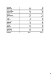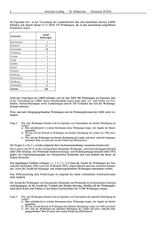 Hessischer Landtag · 20. Wahlperiode · Drucksache 20/2341 3 Zu Frage 3 a: Die GWH Wohnungsbaugesellschaft mbH Hessen ist im mehrheitlichen Besitz der Landesbank Hessen-Thüringen, an der wiederum das Land mit 8,1 % beteiligt ist. Der Woh- nungsbestand der GWH innerhalb Hessens zum 30.09.2019, aufgeschlüsselt nach Kommunen sowie nach Preis-/Belegungsbindung und Förderweg ist in Anlage 3 dargestellt. Weiterhin hält die GWH Wohnungsbestände außerhalb Hessens, die in der Übersicht nicht enthalten sind. Zu Frage 3 b: Eine belastbare Erhebung dieser Daten ist aufgrund des langen Betrachtungszeit- raums nicht möglich, u.a. weil Aufbewahrungsfristen abgelaufen sind. Im Zeitraum von 2010 bis 30.09.2019 ist der Bestand an Wohneinheiten der GWH netto um insgesamt 2.824 gestiegen. Zu Frage 3 c: Siehe Antwort zu 3 a. Frage 4. Wie viele Wohnungen befinden sich im Eigentum der Kommunen? a) Bitte aufschlüsseln nach Kommune. b) Wie hat sich der Bestand an Wohnungen im Eigentum der Kommunen seit 1990 entwickelt? c) Wie hoch ist der aktuelle Anteil kommunaler Wohnungen am Gesamtbestand von Mietwohnun- gen in den jeweiligen Kommunen? d) Wie viele der Wohnungen im Eigentum der Kommunen sind preis- und/oder belegungsgebun- den? Bitte in ersten und zweiten Förderweg differenzieren. e) Wie hoch waren die Ausschüttungen des Landes an die Kommunen seit 2010? Bitte nach Jahr und Kommune aufschlüsseln. Hierzu liegen der Landesregierung keine Angaben vor. Frage 5. Wie viele Wohnungen befinden sich im Eigentum von Unternehmen mit direkter Beteiligung der Kommunen? a) Bitte aufschlüsseln nach Kommune mit Angabe der Beteiligungshöhe. b) Wie hat sich der Bestand an Wohnungen von Unternehmen mit direkter Beteiligung der Kom- munen seit 1990 entwickelt? c) Wie hoch ist der aktuelle Anteil von Wohnungen mit direkter Beteiligung der Kommunen am Gesamtbestand von Mietwohnungen in den jeweiligen Kommunen? d) Wie viele der Wohnungen mit direkter Beteiligung der Kommunen sind preis- und/oder bele- gungsgebunden? Bitte in ersten und zweiten Förderweg differenzieren. e) Wie hoch waren die Ausschüttungen an die Kommunen seit 2010? Bitte nach Jahr und Kom- mune aufschlüsseln. Hierzu liegen der Landesregierung keine Angaben vor. Frage 6. Wie viele Wohnungen befinden sich im Eigentum von Unternehmen mit indirekter Beteiligung der Kommunen? a) Bitte aufschlüsseln nach Kommune mit Angabe der Beteiligungshöhe. b) Wie hat sich der Bestand an Wohnungen von Unternehmen mit indirekter Beteiligung der Kom- munen seit 1990 entwickelt? c) Wie hoch ist der aktuelle Anteil von Wohnungen mit indirekter Beteiligung der Kommunen am Gesamtbestand von Mietwohnungen in den jeweiligen Kommunen? d) Wie viele der Wohnungen mit indirekter Beteiligung der Kommune sind preis- und/oder bele- gungsgebunden? Bitte in ersten und zweiten Förderweg differenzieren. e) Wie hoch waren die Ausschüttungen an die Kommunen seit 2010? Bitte nach Jahr und Kom- mune aufschlüsseln. Hierzu liegen der Landesregierung keine Angaben vor. Frage 7. Welche Kommunen sind an Genossenschaften beteiligt? a) Bitte aufschlüsseln nach Kommune, Höhe der Beteiligung und Anzahl der jeweiligen Genos- senschaftswohnungen. Hierzu liegen der Landesregierung keine Angaben vor. Frage 8. Wie viele Wohnungen im Eigentum des Landes wurden seit 1990 verkauft? a) Bitte aufschlüsseln nach Jahr. b) Bitte mit Angabe der Anzahl der verkauften Wohnungen sowie des Käufers (sollte dies nicht möglich sein, mit Angabe des Käufertyps – privat, öffentlich, genossenschaftlich, sonstige). Zu Frage 8 a: Jahr Anzahl verkaufter Wohnungen 2009 2 2010 2