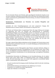 Anlage 1, KA 5808 Wir, die deutschen Theater und Orchester, geben grundlegende künstlerische Impulse in eine sich stets wandelnde Gesellschaft und sind daher nicht nur Bewahrer der künstlerischen Freiheit, sondern auch Katalysator gesellschaftlicher Weiterentwicklung. Aus diesem Verständnis heraus haben wir einen Wertebasierten Verhaltenskodex zur Prävention von sexuellen Übergriffen und Machtmissbrauch entwickelt, der einen Verständigungsprozess und einen progressiven Umgang aller Mitarbeiter*innen an unseren Theatern und Orchestern in Gang setzen soll. Als Theater und Orchester haben wir gemeinsame Werte. Wir zeigen Haltung und ermutigen uns gegenseitig, jede Form von Übergriff oder Diskriminierung zu unterbinden. Geschlechtergerechtigkeit und Chancengleichheit sind für uns elementar. Wir stellen uns der Herausforderung, die Diversität unserer Gesellschaft in unseren Häusern abzubilden und zu leben. Innerbetrieblich zeigen wir einander Respekt und Wertschätzung. Wir sorgen für eine partnerschaftliche Zusammenarbeit in den Betrieben und ein soziales Miteinander mit dem Willen, Konflikte offen anzusprechen und zu lösen. Wir bemühen uns um klare und vertrauensvolle Kommunikation auf allen Ebenen unserer Häuser. Wir tragen aufgrund dieses Selbstverständnisses und als Arbeitgeber die Verantwortung, unsere Mitarbeiter*innen und Künstler*innen aktiv vor sexueller Belästigung und Machtmissbrauch am Arbeitsplatz zu schützen. Dem Management und der Führungsebene jedes Theaters und jedes Orchesters obliegen in diesem Zusammenhang besondere Fürsorgepflichten für die Mitarbeiter*innen. Dieser stellen wir uns als Mitglieder im Deutschen Bühnenverein und sehen es als unsere Aufgabe an, mit diesem wertebasierten Verhaltenskodex für ein diskriminierungs- und angstfreies Arbeitsklima zu sorgen. Grundsätzliches Kennzeichen der Belästigung ist eine Grenzüberschreitung, die ein anderer Mensch gegen seinen Willen erfährt. Als Belästigung können auch Vorgänge empfunden werden, die nicht beabsichtigt waren. Es ist daher nicht angebracht, die persönliche Sphäre anderer zu überschreiten, unter anderem durch: - die (auch versuchsweise) Erzwingung sexueller Handlungen mittels Gewalt oder Androhung von Gewalt - direkte/indirekte Drohung mit Nachteilen für die Ablehnung von Avancen - Versprechen von Vorteilen für sexuelle Zugeständnisse - Zeigen oder Verbreiten von Pornografie 1
