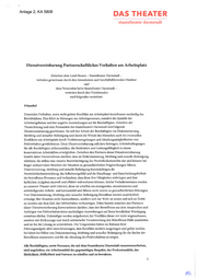 DAS THEATER staatstheater darmstadt 4. Pflichten des Arbeitgebers/Dienstherrn 4.1 Die Theaterleitung missbilligt jede Form von Diskriminierung, Mobbing und sexueller Belästigung am Arbeitsplatz. Sie sieht es als ihre Pflicht an, alles zu tun, um die Beschäftigten davor zu schützen. 4.2 Die Theaterleitung wird in Abstimmung mit Betroffenen gegen Personen vorgehen, die gegen die Ziele dieser Dienstvereinbarung verstoßen oder die solches Verhalten dulden. Die Theaterleitung des Staatstheaters Darmstadt stellt sicher, dass den Beschwerdeführenden aus der Mitteilung eines möglichen Fehlverhaltens kein Nachteil entsteht. 4.3 Werden Beschäftigte durch Personen, die nicht unter die Dienstvereinbarung fallen (z.B. Nutzer und Nutzerinnen öffentlicher Dienstleistungen, Personen die mit dem Staatstheater Darmstadt auf Werkvertragsbasis zusammenarbeiten, Drittfirmen), am Arbeitsplatz sexuell belästigt, diskriminiert oder gemobbt, wird die Theaterleitung des Staatstheaters Darmstadt ihre rechtlichen Möglichkeiten ausschöpfen, um solche Handlungen zu unterbinden und zu ahnden. 5. Verantwortung der Vorgesetzten 5.1 Die jeweiligen Vorgesetzten sind die ersten betrieblichen Ansprechpartner/innen für von Diskriminierung, Mobbing und sexueller Belästigung Betroffenen. Die Vorgesetzten haben durch ihr Verhalten zu einem Betriebsklima beizutragen, das von partnerschaftlichem Umgang geprägt ist und in dem die persönliche Integrität und die Würde aller Beschäftigten respektiert wird. Die Vorgesetzten tragen die Verantwortung dafür, dass Hinweisen auf Diskriminierung, Mobbing und sexueller Belästigung in ihrem Arbeitsbereich unverzüglich nachgegangen wird und Maßnahmen zur Konfliktlösung (vgl. Ziffer 7) eingeleitet und überprüft werden. Die Vorgesetzten können sich dabei von den in Ziffer 6.2 genannten Personen und Anlaufstellen beraten lassen bzw. sollten deren Lösungsvorschläge einbeziehen. Das Vorgehen ist im Einzelnen zu dokumentieren. 5.2 Vorgesetzte sind verpflichtet, an angebotenen Schulungen bzw. Fort- und Weiterbildungsmaßnahmen im Sinne dieser Dienstvereinbarung teilzunehmen. 5.3 Vorgesetzte, die Diskriminierung, Mobbing und sexuelle Belästigung nicht konsequent entgegentreten, sind auf ihre Verantwortung vom nächsthöheren Vorgesetzten hinzuweisen. Nehmen Vorgesetzte ihre Aufgaben im Sinne dieser Dienstvereinbarung nicht wahr, stellt dies eine Dienstpflichtverletzung dar, die disziplinar- oder arbeitsrechtlich verfolgt werden kann. Sofern erkennbar ist, dass die Aufarbeitung und Klärung der Vorgänge in der Dienststelle nicht möglich ist, ist die Dienststellenleitung verpflichtet, den nächsthöheren Dienstvorgesetzten schnellstmöglich einzuschalten.