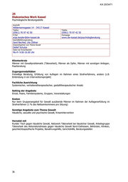 KA 20/3471 25 Diakonisches Werk Kassel Psychologische Beratungsstelle Anschrift Wildemannsgasse 14 · 34117 Kassel Telefon Telefax (0561) 70 97 42 50 (0561) 70 97 42 55 E-Mail Homepage anja.kessler@dw-kassel.de www.dw-kassel.de/psychologberatung Geschäftsführung/Leitung Gerd Bechtel, Ute Zöllner Ansprechpartner zum Thema Gewalt Detlef Schulze Zeiten der Erreichbarkeit Mo-Fr 9.00-16.00 Uhr Klientenkreis Männer mit Gewaltproblematik (Täterarbeit), Männer als Opfer, Männer mit sonstigen Anliegen, Paarberatung Zugangsmodalitäten Freiwillige Beratung, Erfüllung von Auflagen im Rahmen eines Strafverfahrens, andere (z.B. Einbindung in ein Interventionsprojekt) Fachliche Ausrichtung Systemischer, verhaltenstherapeutischer, gestalttherapeutischer Ansatz Setting der Angebote Einzel, Paare, Familiensysteme, Gruppen, Veranstaltungen Kosten Nur beim Gruppenangebot für Gewalt ausübende Männer im Rahmen der Auflagenerfüllung im Strafverfahren (1 % des Nettoeinkommens pro Sitzung) Sonstige Angebote zum Thema Gewalt Häusliche, sexuelle und psychische Gewalt, Krisenintervention Vernetzt mit Runder Tisch gegen häusliche Gewalt, Netzwerk Täterarbeit bei häuslicher Gewalt, Arbeitsgruppe Täterarbeit des Aktionsbündnisses gegen häusliche Gewalt Nord-Osthessen, Behörden, Kliniken, geschlechtsspezifische Projekte, Bewährungshilfe, Gerichtshilfe, Beratungsstellen 36