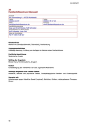KA 20/3471 29 Familienhilfezentrum Odenwald Anschrift Am Donnersberg 4 · 64720 Michelstadt Telefon Telefax (06061) 21 87 (06061) 70 17 18 E-Mail Homepage info@familienhilfezentrum.de www.familienhilfezentrum.de Geschäftsführung/Leitung Inge und Arndt Weixler, Rolf Schneider Ansprechpartner zum Thema Gewalt Rolf Schneider, Ivan Ohrt Zeiten der Erreichbarkeit Mo-Fr 9.00-17.00 Uhr Klientenkreis Männer mit Gewaltproblematik (Täterarbeit), Paarberatung Zugangsmodalitäten Freiwillige Beratung, Erfüllung von Auflagen im Rahmen eines Strafverfahrens Fachliche Ausrichtung Systemischer Ansatz Setting der Angebote Einzel, Paare, Familiensysteme, Gruppen Kosten Kursbeteiligung der Teilnehmer: 60 € bei Jugendamt-Maßnahme Sonstige Angebote zum Thema Gewalt Häusliche, sexuelle und psychische Gewalt, Sozialpädagogische Familien- und Erziehungshilfe Vernetzt mit Arbeitsgruppe gegen Häusliche Gewalt (regional), Behörden, Kliniken, niedergelassene Therapeu- tInnen 40