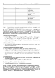 20. Wahlperiode Drucksache 20/3415 HESSISCHER LANDTAG 02. 10. 2020 Kleine Anfrage Dr. Daniela Sommer (SPD) vom 18.08.2020 Gesundheitsförderung und Prävention in Hessen – Teil II und Antwort Minister für Soziales und Integration Vorbemerkung Fragestellerin: Die hessische Arbeitsgemeinschaft für Gesundheitsförderung e.V. (HAGE) hat Ende 2015 das „Strategiepapier 2020“ verabschiedet, welches eine langfristige Strategie zur Gesundheitsförderung und Prävention in Hessen darstellt. Fünf Jahre später sollten dann die Ziele einer kritischen Evaluation unterzogen werden, damit beste- hende Herausforderungen und Bedarfe festgestellt werden können. Diese Vorbemerkung der Fragestellerin vorangestellt, beantworte ich die Kleine Anfrage wie folgt: Frage 1. Wie wird das Beratungsangebot der HAGE von den hessischen Kommunen angenommen? Inwiefern zeichnen sich geografische Trends bei der Wahrnehmung von Beratungen durch hessi- sche Kommunen ab? Die HAGE berät unterschiedliche kommunale Akteurinnen und Akteure (z.B. Gesundheitsämter, Jugendämter, kommunale Jobcenter) zu vielfältigen Themen der Gesundheitsförderung und Prä- vention. Die Beratung von Kommunen erfolgt insbesondere durch die Koordinierungsstelle Ge- sundheitliche Chancengleichheit (KGC) aber auch durch die Arbeitsbereiche „Gesund Aufwach- sen“, „Gesund Bleiben“, „Gesund Altern“, die Fach- und Vernetzungsstelle Senioren- und Ge- nerationenhilfen und die Koordinations- und Ansprechstelle für Dienste der Sterbebegleitung und Angehörigenbetreuung (KASA). Beispielhaft wird hier die Beratung durch die KGC näher aus- geführt. Die KGC Hessen berät die hessischen Kommunen im strategischen und fachlichen Auf- und Aus- bau von integrierten kommunalen Strategien (Präventionsketten) sowie zur Gesundheitsförderung von vulnerablen Zielgruppen im kommunalen Kontext. Hierbei richten sich die Beratungen v.a. an kommunale Verwaltungsakteurinnen und Verwaltungsakteure aus Institutionen und Ämtern (Gesundheits-, Jugend., Sozial-, und Umweltämter etc.) sowie an kommunale Praxisakteurinnen und Praxisakteure aus Wohlfahrtsverbänden und sozialen Einrichtungen (Quartiersarbeit, Famili- enzentren, MGH, Stadtteilzentren, Frühen Hilfen, Suchtprävention etc.). Das Beratungsangebot wird nach ca. dreijähriger Netzwerkarbeit sehr gut von den Kommunalakteurinnen und -akteuren angenommen. Tabelle 1 gibt einen Überblick über die durch die KGC in den Jahren 2019 und 2020 durchgeführten Beratungen. Die Übersicht zeigt eine hohe Inanspruchnahme der Beratung durch Kommunen in Südhessen. Tabelle 1: Übersicht Kommunen mit Beratung durch die KGC LK/Stadt LK/Stadt LK/Stadt Nordhessen Mittelhessen Südhessen Eschwege Gießen Bad Homburg Fulda Lahn-Dill-Kreis Bad Nauheim Kassel Limburg Frankfurt/Main Schwalm-Eder-Kreis Wetzlar Dietzenbach Waldeck-Frankenberg Groß-Gerau Werra-Meißner-Kreis Hanau Eingegangen am 2. Oktober 2020 · Bearbeitet am 5. Oktober 2020 · Ausgegeben am 8. Oktober 2020 Herstellung: Kanzlei des Hessischen Landtags · Postfach 3240 · 65022 Wiesbaden · www.Hessischer-Landtag.de