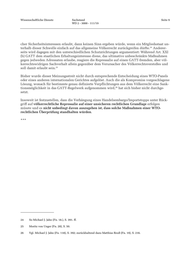 Wissenschaftliche Dienste Sachstand Seite 9 WD 2 - 3000 - 111/19 cher Sicherheitsinteressen erlaubt, dann keinen Sinn ergeben würde, wenn ein Mitgliedsstaat un- terhalb dieser Schwelle einfach auf das allgemeine Völkerrecht zurückgreifen dürfte. Anderer- 24 seits wird dagegen mit den unterschiedlichen Schutzrichtungen argumentiert: Während Art. XXI (b) GATT dem staatlichen Erhaltungsinteresse diene, das ultimative unbeschränkte Maßnahmen gegen jedweden Adressaten erlaube, reagiere die Repressalie auf einen GATT-fremden, aber völ- kerrechtswidrigen Sachverhalt allein gegenüber dem Verursacher des Völkerrechtsverstoßes und soll damit erlaubt sein. 25 Bisher wurde dieser Meinungsstreit nicht durch entsprechende Entscheidung eines WTO-Panels oder eines anderen internationalen Gerichtes aufgelöst. Auch die als Kompromiss vorgeschlagene Lösung, wonach für bestimmte genau definierte Verpflichtungen aus dem Völkerrecht eine Sank- tionsmöglichkeit in das GATT-Regelwerk aufgenommen wird, hat sich bisher nicht durchge- 26 setzt. Insoweit ist festzustellen, dass die Verhängung eines Handelsembargo/Importstopps unter Rück- griff auf völkerrechtliche Repressalie auf einer unsicheren rechtlichen Grundlage erfolgen müsste und es nicht unbedingt davon auszugehen ist, dass solche Maßnahmen einer WTO- rechtlichen Überprüfung standhalten würden. *** 24 So Michael J. Jahn (Fn. 18.), S. 391. ff. 25 Moritz von Unger (Fn. 20), S. 50. 26 Vgl. Michael J. Jahn (Fn. 118), S. 392; zurückhaltend dazu Matthias Reuß (Fn. 19), S. 216.
