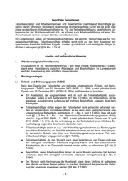 I. Begriff der Teilzeitarbeit Teilzeitbeschäftigt sind Arbeitnehmerinnen und Arbeitnehmer (nachfolgend Beschäftigte ge- nannt), deren vertraglich vereinbarte regelmäßige Wochenarbeitszeit kürzer als die einer oder eines vergleichbaren Vollzeitbeschäftigten ist. Für die Teilzeitbeschäftigung besteht keine Un- tergrenze bei der Wochenarbeitszeit; d.h., es können auch Arbeitsverhältnisse mit einer Wo- chenarbeitszeit von nur wenigen Stunden vereinbart werden. Im Landesbereich gelten für Teilzeitarbeitsverhältnisse die gleichen Tarifverträge wie für Voll- zeitarbeitsverhältnisse. Teilzeitbeschäftigte erhalten somit nicht nur den ihrer Arbeitszeit ent- sprechenden Anteil des tariflichen Entgelts, sondern grundsätzlich auch anteilig die übrigen ta- riflichen Leistungen (vgl. § 24 Abs. 2 TV-H). II. Arbeits- und tarifrechtliche Hinweise 1. Arbeitsvertragliche Vereinbarung Grundsätzlich ist ein Teilzeitarbeitsvertrag – wie jeder andere Arbeitsvertrag – Gegen- stand einer Vereinbarung zwischen Arbeitgeber und Beschäftigten. Im Landesbereich wird der Arbeitsvertrag stets schriftlich abgeschlossen. 2. Rechtsgrundlagen 2.1 Teilzeit- und Befristungsgesetz (TzBfG) Nach dem Gesetz über Teilzeitarbeit und befristete Arbeitsverträge (Teilzeit- und Befris- tungsgesetz - TzBfG) vom 21. Dezember 2000 (BGBl. I S. 1966), zuletzt geändert durch Gesetz vom 20. Dezember 2011 (BGBl. I S. 2854), ist Folgendes zu beachten: ● Ein Arbeitsplatz, der ausgeschrieben wird, ist auch als Teilzeitarbeitsplatz auszu- schreiben, sofern er sich hierfür eignet (§ 7 Abs. 1 TzBfG). Die Entscheidung, ob die jeweiligen Aufgaben eine Aufteilung auf mehrere Beschäftigte zulassen, liegt beim Arbeitgeber. ● Teilzeitbeschäftigte dürfen wegen der Teilzeitarbeit nicht schlechter behandelt wer- den als vergleichbare Vollzeitbeschäftigte, es sei denn, dass sachliche Gründe eine unterschiedliche Behandlung rechtfertigen (§ 4 Abs. 1 Satz 1 TzBfG). Dies gilt auch nach §§ 1, 3 Abs. 2, 7 Abs. 1 des Allgemeinen Gleichbehandlungsgesetzes (AGG) vom 14. August 2006 (BGBl. I S. 1897), zuletzt geändert durch Gesetz vom 3. April 2013 (BGBl. I S. 610), da die Anknüpfung an die Teilzeitarbeit eine mittelbare Be- nachteiligung wegen des Geschlechts darstellen kann. ● Teilzeitbeschäftigte sollen an Aus- und Weiterbildungsmaßnahmen zur Förderung der beruflichen Entwicklung und Mobilität teilnehmen können, es sei denn, dass dringen- de betriebliche Gründe oder Aus- und Weiterbildungswünsche anderer Teil- oder Vollzeitbeschäftigter entgegenstehen (§ 10 TzBfG). ● Teilzeitbeschäftigte, die den Wunsch nach einer Veränderung von Dauer und Lage der vertraglich vereinbarten Arbeitszeit angezeigt haben, sind über entsprechende Arbeitsplätze, die in der Dienststelle besetzt werden sollen, zu informieren (§ 7 Abs. 2 TzBfG). ● Beschäftigte, deren Arbeitsverhältnis länger als sechs Monate bestanden hat, können verlangen, dass ihre vertraglich vereinbarte Arbeitszeit verringert wird (§ 8 Abs. 1 TzBfG). ● Der Wunsch nach Verringerung der Arbeitszeit sowie deren Umfang ist spätestens drei Monate vor deren Beginn geltend zu machen. Hierbei soll die gewünschte Vertei- lung der Arbeitszeit angegeben werden (§ 8 Abs. 2 TzBfG). -3-