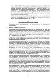 Nach § 18 Abs. 2 BEEG n.F. und a.F. gilt der Kündigungsschutz nach § 18 Abs. 1 n.F. und a.F. entsprechend, wenn Beschäftigte während der Elternzeit bei demselben Ar- beitgeber Teilzeitarbeit leisten oder – ohne Elternzeit in Anspruch zu nehmen – Teil- zeitarbeit leisten und Anspruch auf Elterngeld nach § 1 BEEG während des Bezugs- raums nach § 4 Abs. 1 BEEG haben. Diese Regelung erfasst insbesondere bereits bestehende Teilzeitarbeitsverhältnisse von nicht mehr als 30 Wochenstunden im Durchschnitt des Monats, die aus Anlass der Betreuung und Erziehung des Kindes nicht umgestaltet zu werden brauchen. Auf die vom Bundesministerium für Familie, Senioren, Frauen und Jugend erlassene „Allgemeine Verwaltungsvorschrift zum Kündigungsschutz bei Elternzeit vom 3. Janu- ar 2007“ wird hingewiesen (BAnz 2007, Nr. 5 S. 247). III. Sozialversicherungsrechtliche Hinweise Grundsätzlich werden Teilzeitbeschäftigte in der Sozialversicherung wie Vollzeitbeschäf- tigte behandelt. 1. Kranken- und Pflegeversicherung Beschäftigte, die versicherungspflichtig werden, weil ihre Arbeitszeit auf die Hälfte oder weniger als die Hälfte der regelmäßigen Wochenarbeitszeit vergleichbarer Vollzeitbe- schäftigter herabgesetzt wird, werden auf Antrag von der Versicherungspflicht in der Kranken- und Pflegeversicherung befreit, sofern sie bereits seit mindestens fünf Jahren wegen Überschreitens der Jahresarbeitsentgeltgrenze versicherungsfrei sind (§ 8 Abs. 1 Nr. 3 SGB V, § 20 und § 23 SGB XI). Das gilt auch für Beschäftigte, die im Anschluss an ihr bisheriges Beschäftigungsverhält- nis bei einem anderen Arbeitgeber ein Beschäftigungsverhältnis aufnehmen, das die vor- stehenden Voraussetzungen erfüllt. Der Antrag auf Befreiung ist innerhalb von drei Monaten nach Beginn der Versicherungs- pflicht bei der Krankenkasse zu stellen. Die Befreiung wirkt vom Beginn der Versiche- rungspflicht an, wenn seit diesem Zeitpunkt noch keine Leistungen in Anspruch genom- men wurden; sonst vom Beginn des Kalendermonats an, der auf die Antragstellung folgt. Die Befreiung kann nicht widerrufen werden (§ 8 Abs. 2 SGB V). Beschäftigte, die wegen der Umstellung ihres Arbeitsverhältnisses in ein Teilzeit- arbeitsverhältnis krankenversicherungspflichtig werden und von der Befreiungsmöglichkeit keinen Gebrauch machen wollen, können ihren Versicherungsvertrag bei einem privaten Krankenversicherungsunternehmen mit Wirkung vom Eintritt der Versicherungspflicht an kündigen (§ 205 Abs. 2 VVG). Das Recht auf Kündigung besteht auch für solche Perso- nen, für die eine Familienversicherung nach § 10 SGB V eintritt. Kommen nach der Kündigung des privaten Versicherungsvertrages eine Pflichtversiche- rung, eine freiwillige Versicherung oder eine Familienversicherung nicht zu Stande, oder endet eine Pflicht-/Familienversicherung, bevor die Vorversicherungszeit für eine freiwilli- ge Versicherung in der gesetzlichen Krankenversicherung erfüllt ist, ist das private Versi- cherungsunternehmen ohne Risikoprüfung und zu den bei der Kündigung geltenden Ta- rifbedingungen zu einem erneuten Abschluss eines Versicherungsvertrages verpflichtet, wenn der vorherige Vertrag für mindestens fünf Jahre vor seiner Kündigung ununterbro- chen bestanden hat (§ 5 Abs. 9 SGB V). Bei Pflichtversicherten in Vollzeit- oder Teilzeitbeschäftigung werden die Beiträge zur ge- setzlichen Kranken- und Pflegeversicherung von den Beschäftigten und deren Arbeitge- ber getragen (§ 249 SGB V, § 58 SGB XI). Freiwillig in der gesetzlichen Kranken- und Pflegeversicherung Versicherte, die nur wegen Überschreitens der Jahresarbeitsentgelt- grenze versicherungsfrei sind oder privat Versicherte, die nur wegen Überschreitens der Jahresarbeitsentgeltgrenze oder der Altersgrenze von 55 Jahren für den Eintritt der Versi- -9-