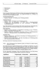 2 Hessischer Landtag · 20. Wahlperiode · Drucksache 20/1242 Ebsdorfergrund Gladenbach Lohra Wohratal In den Gemeinden Ebsdorfergrund und Wohratal stehen in den nachgenannten Baugebieten bau- reife Grundstücke überwiegend für Einzel- und Doppelhausbebauung zur Verfügung. Die Grundstücke stehen im Eigentum der HLG: Gemeinde Ebsdorfergrund: Baugebiet „Rainacker“, OT Roßberg: noch 4 Wohnbaugrundstücke. Gemeinde Wohratal: Baugebiet „Lücke“, OT Halsdorf: noch 7 Wohnbaugrundstücke. Baugebiet „Über den Knottengärten“, OT Wohra: noch 6 Wohnbaugrundstücke (1. Bauabschnitt); Erweiterungsflächen im nicht erschlossenen 2. Bauabschnitt: 14 Wohnbaugrundstücke. In der Stadt Gladenbach und der Gemeinde Lohra werden gegenwärtig die nachstehenden Bau- gebiete entwickelt. Der erforderliche Grunderwerb ist bereits durch die HLG erfolgt: Stadt Gladenbach: Baugebiet „Im oberen Haumbach“, ST Weidenhausen: Entwicklung von insg. 15 Wohnbau- flächen, voraussichtliche Baureife Ende 2020. Baugebiet „Lammerich“, ST Erdhausen: Entwicklung von insg. ca. 33 Wohnbaugrundstü- cken und ca. 3 Mischgebietsflächen, voraussichtliche Baureife Anfang 2021. Gemeinde Lohra: Baugebiet „Wilhelmstraße“, OT Kirchvers: Entwicklung von 8 Wohnbaugrundstücken, vo- raussichtliche Baureife Juni 2020. Baugebiet „Auf den langen Strichen“, OT Lohra: Entwicklung von 35 Wohnbaugrundstü- cken, voraussichtliche Baureife Ende 2020. Im Übrigen wird auf die Vorbemerkung verwiesen. Frage 6. Hat die Landesregierung bereits Maßnahmen ergriffen, um Wohnraum im Landkreis Marburg- Biedenkopf zu schaffen? Die Landesregierung hat geeignete Förderprogramme zur Schaffung von Wohnraum, die in den letzten Jahren mit immer mehr Fördermitteln ausgestattet wurden. Die Städte und Landkreise werden jährlich aufgefordert, geeignete Baumaßnahmen für die einzelnen Programme anzumel- den. Aufgrund der Mittelausstattung konnten alle Anmeldungen in das jeweilige Förderpro- gramm aufgenommen werden. Es musste keine Anmeldung abgelehnt werden. Für alle eingereichten Anmeldungen wurden den jeweiligen Bauherren in der Stadt Marburg und im Landkreis Marburg-Biedenkopf folgende Fördermittel bereitgestellt: Stadt/Kreis Programmjahr Fördermittel Wohneinheiten Stadt Marburg 2015 5.145.000 € 78 Stadt Marburg 2016 3.163.105 € 150 LK Marburg-Biedenkopf 2016 1.717.000 € 21 Stadt Marburg 2017 7.530.200 € 100 Stadt Marburg 2018 4.711.820 € 47 LK Marburg-Biedenkopf 2018 627.100 € 8 Stadt Marburg 2019 2.090.000 € 22
