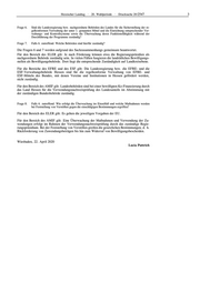 Hessischer Landtag · 20. Wahlperiode · Drucksache 20/2547 3 Frage 6. Sind die Landesregierung bzw. nachgeordnete Behörden des Landes für die Sicherstellung der re- gelkonformen Verwaltung der unter 1. genannten Mittel und die Einrichtung entsprechender Ver- waltungs- und Kontrollsysteme sowie die Überwachung deren Funktionsfähigkeit während der Durchführung der Programme zuständig? Frage 7. Falls 6. zutreffend: Welche Behörden sind hierfür zuständig? Die Fragen 6 und 7 werden aufgrund des Sachzusammenhangs gemeinsam beantwortet. Für den Bereich des ELER gilt: Je nach Förderung können etwa die Regierungspräsidien als nachgeordnete Behörde zuständig sein. In vielen Fällen fungieren die landrätlichen Bewilligungs- stellen als Bewilligungsbehörde. Dort liegt die entsprechende Zuständigkeit auf Landkreisebene. Für die Bereiche des EFRE und des ESF gilt: Die Landesregierung bzw. die EFRE- und die ESF-Verwaltungsbehörde Hessen sind für die regelkonforme Verwaltung von EFRE- und ESF-Mitteln des Bundes, mit denen Vereine und Institutionen in Hessen gefördert werden, nicht zuständig. Für den Bereich des AMIF gilt: Landesbehörden sind bei einer bewilligten Ko-Finanzierung durch das Land Hessen für die Verwendungsnachweisprüfung des Landesanteils im Abstimmung mit der zuständigen Bundesbehörde zuständig. Frage 8. Falls 6. zutreffend: Wie erfolgt die Überwachung im Einzelfall und welche Maßnahmen werden bei Feststellung von Verstößen gegen die einschlägigen Bestimmungen ergriffen? Für den Bereich des ELER gilt: Es gelten die jeweiligen Vorgaben der EU. Für den Bereich des AMIF gilt: Eine Überwachung der Maßnahmen und Verwendung der Zu- wendungen erfolgt im Rahmen der Verwendungsnachweisprüfung durch das zuständige Regie- rungspräsidium. Bei der Feststellung von Verstößen greifen die gesetzlichen Bestimmungen, d. h. Rückforderung von Zuwendungsbeträgen bis hin zum Widerruf von Bewilligungsbescheiden. Wiesbaden, 22. April 2020 Lucia Puttrich