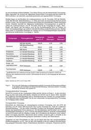 2 Hessischer Landtag · 20. Wahlperiode · Drucksache 20/1881 im Ausschreibungsverfahren befänden. Zwei dieser Praxen seien der hausärztlichen Versorgungs- ebene zugeordnet, die weiteren der allgemeinen fachärztlichen Versorgung und hier konkret der HNO-ärztlichen, nervenärztlich, psychotherapeutischen und augenärztlichen Versorgung. Darüber hinaus sei mit Beschluss des Landesausschusses vom 28. November 2019 die Mittelbe- reiche Bad Hersfeld, Bebra/Rotenburg a. d. Fulda und Sontra im hausärztlichen Bereich partiell geöffnet worden. Die sich dadurch ergebenen Sitze können der nachstehenden Tabelle entnommen werden. Ebenfalls innerhalb der allgemeinen fachärztlichen Versorgungsebene sei gemäß Be- schluss des Landesausschusses vom 28. November 2019 für die Arztgruppe der Augen-, Haut-, Kinder- und Jugend- und Nervenärzte sowie für die Psychotherapeuten Sitze im Umfang von sechs Versorgungsaufträgen im Landkreis Hersfeld-Rotenburg ausgeschrieben gewesen. Darüber hinaus käme es zu partiellen Öffnungen im Umfang von 4,0 Versorgungsaufträgen innerhalb der spezialisierten fachärztlichen Versorgung (s. Tabelle). Versorgungs- Partielle Partielle Fachgruppe Planungsbereich 1 1 2 grad in % Öffnungen Öffnungen MB Bad Hersfeld 106,06 2,00 2,00 MB Bebra/Rotenburg Hausärzte a. d. Fulda 100,07 2,50 2,50 MB Sontra 63,56 5,00 5,00 Kinderärzte LK Hersfeld-Rotenburg 104,02 0,50 0,50 Nervenärzte LK Hersfeld-Rotenburg 85,78 1,50 1,50 Psychotherapeuten LK Hersfeld-Rotenburg 103,45 1,50 1,50 Augenärzte LK Hersfeld-Rotenburg 109,79 0,50 0,50 Hautärzte LK Hersfeld-Rotenburg 62,23 2,00 2,00 Kinder- und Jugendpsychiater ROR Osthessen 28,56 3,00 2,00 Fachinternisten ROR Osthessen 106,89 1,00 1,00 1 gemäß Beschluss des Landesausschusses vom 28.11.2019; beruhend auf Arztstand 01.10.2019; der Beschluss des Landesausschusses vom 28.11.2019 befindet sich derzeit für die Fachgruppe der Nervenärzte in Korrektur 2 Stand 17.12.2019 Quelle: Schreiben der KVH vom 29. Januar 2020 Frage 5. Wie weit ist die Entfernung zur nächstgelegenen ärztlichen Versorgung für Bürgerinnen und Bürger in den Städten und Gemeinden des Kreises Hersfeld-Rotenburg, wenn keine ärztliche Versorgung innerhalb der Kommune mehr gegeben ist? Vertragszahnärztliche Versorgung: Die KZVH verweist auf die vorgenannten Zahlen und die Antwort zu Frage 4., so dass sich diese Frage aus ihrer Sicht nicht stelle (Quelle: Schreiben der KZVH vom 30. Januar 2020). Innerhalb des Landkreises Hersfeld-Rotenburg gebe es flächendeckend eine Vielzahl von vertragszahnärzt- lichen Behandlerinnen und Behandler, die für eine wohnortnahe vertragszahnärztliche Versorgung zur Verfügung stehen würden. Vertragsärztliche Versorgung: Hinsichtlich der Entfernung zur nächstgelegenen ärztlichen Versorgung weist die KVH mit Schreiben vom 29. Januar 2020 darauf hin, dass in jeder Gemeinde bzw. Stadt des Landkreises Hersfeld-Rotenburg – von den beiden Gemeinden Cornberg und Breitenbach abgesehen – min- destens eine hausärztliche Praxis ansässig sei. Die Bewohnerinnen und Bewohner von Cornberg und Breitenbach benötigten ca. 8 bis 12 km bis zum nächsten Hausarzt. In diesem Zusammenhang sei laut KVH jedoch auch der Medibus erwähnt, der in Nordhessen die Hausärzte in der wohnor- tnahen Versorgung unterstützt. Sprechzeiten dieser mobilen Arztpraxis gäbe es ebenfalls in den im Landkreis Hersfeld-Rotenburg gelegenen Gemeinden Cornberg und Nentershausen. Ausgehend von einer Praxisabgabe im Alter von 65 Jahren und einer eher unwahrscheinlichen Nachbesetzungsquote von 0%, wäre im Jahr 2030 ebenfalls in den im Landkreis Hersfeld-Roten- burg gelegenen Gemeinden Alheim, Nentershausen, Kirchheim, Ludwigsau, Neuenstein und Wil-