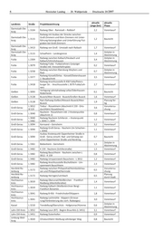 Hessischer Landtag · 20. Wahlperiode · Drucksache 20/2897 5 aktuelle aktuelle Landkreis Straße Projektbezeichnung Länge (km) Phase Darmstadt- B 449 Querungshilfe bei Darmstadt R 8 0,3 Vorentwurf Dieburg Fulda B 458 Radweg Fulda (L 3174) – Dipperz 1,3 Vorentwurf Gießen B 49 Rad-/Gehweg Gießen-Buseck/Oppenrod 5,9 Vorentwurf Gießen B 49 Radweg Grünberg-Mücke/Flensungen 4,5 Vorentwurf Gießen B 49 Rad-/Gehweg Ortsdurchfahrt Grünberg 1,1 Vorentwurf Groß-Gerau B 44 Frankfurter Str. - Wageninger Str. bei Mörfelden 0,4 Vorentwurf Gernsheim, Knotenpunkt B 426/L 3112 (Pfungstäd- Voruntersu- Groß-Gerau B 44 ter Straße), 0,2 chung Anpassung Radweg Lückenschluss Rad- und Gehweg Groß - Gerau - B 44 Voruntersu- Groß-Gerau Büttelborn Kappenverbreiterung A67 Überführung 1,1 B 42 chung B 42/B44 und B 44 Unterführung Taunusstraße Neubau eines Radweges zwischen Mörfelden und Voruntersu- Groß-Gerau B 486 der Anschlussstelle Langen - Mörfelden - Lücken- 1,3 chung schluss Hochtaunus- B 456 Radweg Bad Homburg/Dornholzhausen - L 3041 1,3 Vorentwurf kreis Limburg- B8 B 8 Radweg Limburg – Elz 0,8 Vorentwurf Weilburg Main-Kinzig- Frankfurt (Kreisgrenze Main-Kinzig-Kreis)-Main- Voruntersu- B8 1,7 Kreis tal/Bischofsheim (K985) chung Main-Kinzig- Voruntersu- B 43 Mühlheim/Dietesheim - Hanau/Steinheim 2,2 Kreis chung Main- B 40/B 519 Radweg Flörsheim/Weilbach - Hof- B 40 2,2 Vorentwurf Taunus-Kreis heim/Marxheim Marburg-Bie- B 453 Radweg Dautphetal/ Mornshausen - Daut- B 453 0,6 Vorentwurf denkopf phetal/ Amelose Radweg Langen - Dreieich/Offenthal (von Kober- Offenbach B 486 2,5 Vorentwurf städter Str. bis Geißberg Philippseicher Str.) Rheingau- Radwegeverbindung zwischen Rheinradweg und B 42 0,5 Vorentwurf Taunus-Kreis Ortsdurchfahrt Rüdesheim Schwalm- B3 Jesberg - Zwesten/Oberurff, Rad-/Gehweg 2,0 Bauentwurf Eder-Kreis Vogelsberg- B 62 Rad-/Gehweg Alsfeld/Leusel - Alsfeld/Angenrod 1,6 Vorentwurf kreis Twistetal Berndorf - Twistetal/Twiste komb. Rad- Waldeck- Planung fer- B 252 /Gehweg 1,2 Frankenberg tig 2.Bauabschnitt Wetterau- B3 Karben/Okarben - Wöllstadt/Nieder-Wöllstadt 1,5 Vorentwurf kreis Wetterau- B 275 Ranstadt - Ortenberg/Selters 4,2 Baurecht kreis Wetterau- B 455 Rad-/Gehweg Friedberg-Dorheim 1,2 Vorentwurf kreis Wetterau- B 455 Voruntersu- Rosbach/Ober-Rosbach - Friedberg 4,1 kreis B 275 chung In Planung befindliche Radwege an Landesstraßen: aktuelle aktuelle Landkreis Straße Projektbezeichnung Länge (km) Phase Bergstraße L 3111 Viernheim – Hüttenfeld 5,4 Baurecht Neubau eines Radweges bei Lorsch (Lücken- Bergstraße L 3111 0,2 Vorentwurf schluss) Bergstraße L 3120 Mörlenbach – Bonsweiher 0,9 Bauentwurf Bergstraße L 3398 Hüttenfeld - Heppenheim (Lückenschluss) 1,2 Bauentwurf Viernheim - Landesgrenze (Richtung Zeitplan in Bergstraße L 3111 0,8 Lützelsachsen) Abstimmung Darmstadt-Die- L 3097 Querungshilfe R 8 bei Darmstadt (Messel) 0,2 Bauentwurf burg Darmstadt-Die- Radweg von Malchen bis zur B 426 (Eberstadt) L 3100 1,2 Vorentwurf burg - Lückenschluss