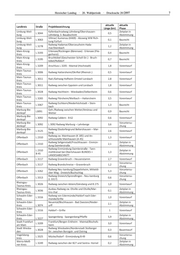 Hessischer Landtag · 20. Wahlperiode · Drucksache 20/2897 7 aktuelle aktuelle Landkreis Straße Projektbezeichnung Länge (km) Phase Limburg-Weil- Kallenbachradweg Löhnberg/Obershausen- Zeitplan in L 3044 0,5 burg Löhnberg; 3. Bauabschnitt Abstimmung Limburg-Weil- Villmar/ Aumenau (K469) - Abzweig WW Rich- L 3063 0,1 Baurecht burg tung Fürfurt Limburg-Weil- Radweg Hadamar/Oberzeuzheim-Hada- Zeitplan in L 3278 1,2 burg mar/Steinbach Abstimmung Main-Kinzig- Erlensee/Rückingen (Bärensee) - Erlensee (Flie- L 3193 0,4 Baurecht Kreis gerhorst) Main-Kinzig- Bruchköbel (Geschwister-Scholl-Str.) - Bruch- L 3195 0,7 Baurecht Kreis köbel/Roßdorf Main-Kinzig- L 3209 Anschluss L 3205 - Maintal (Hochstadt) 1,8 Vorentwurf Kreis Main-Taunus- L 3006 Radweg Hattersheim/Okriftel (Rheinstr.) 0,5 Vorentwurf Kreis Main-Taunus- L 3011 Rad-/Gehweg Hofheim-Ortsteil Lorsbach 2,8 Vorentwurf Kreis Main-Taunus- L 3011 Radweg zwischen Eppstein und Lorsbach 1,8 Vorentwurf Kreis Main-Taunus- L 3028 Radweg Hochheim - Wiesbaden/Delkenheim 0,6 Vorentwurf Kreis Main-Taunus- L 3265 Radweg Flörsheim/Weilbach – Hattersheim 3,5 Vorentwurf Kreis Main-Taunus- Radweg Eschborn/Niederhöchstadt – Stein- L 3367 1,3 Baurecht Kreis bach Marburg-Bie- Geh-/Radweg zwischen Wetter/Amönau und L3091 0,9 Baurecht denkopf Wetter Marburg-Bie- L 3092 Radweg Caldern - B 62 0,6 Vorentwurf denkopf Marburg-Bie- Voruntersu- L 3092 L 3092 Radweg Marburg – Lahnberge 3,6 denkopf chung Marburg-Bie- Radweg Ebsdorfergrund Beltershausen – Mar- L 3125 2,6 Vorentwurf denkopf burg Radweg zw. Mainhausen (K 185) und An- Offenbach L 2310 1,3 Vorentwurf schlussstelle Mainhausen (A 45) Radweg Seligenstadt/Froschhausen - Einmün- Zeitplan in Offenbach L 2310 2,1 dung Daimlerstraße Abstimmung Radweg Einmündung Daimlerstraße - Tann- L 2310 Zeitplan in Offenbach mühlkreisel bei Obertshausen BUNDES + 1,3 B 45 Abstimmung LANDESABSCHNITT Offenbach L 3117 Radweg Gravenbruch – Heusenstamm 2,7 Vorentwurf Voruntersu- Offenbach L 3117 Radweg Brandschneise – Gravenbruch 1,2 chung Radweg Neu-Isenburg/Zeppelinheim, Mitteldi- Voruntersu- Offenbach L 3262 5,3 cker Weg - Dreieich/Buchschlag chung Radweg Dreieich/Sprendlingen - Neu-Isenburg Voruntersu- Offenbach L 3313 0,6 (L 3317) chung Rheingau- L 3026 Radweg zwischen Idstein/Gänsberg und B 275 1,0 Vorentwurf Taunus-Kreis Rheingau- Ausbau Radweg zw. Eltville und Eltville/Mar- Zeitplan in L 3036 0,1 Taunus-Kreis tins-thal Abstimmung Schwalm-Eder- Radweg von Edermünde/Haldorf nach Eder- L 3316 1,0 Vorentwurf Kreis münde/Grifte Schwalm-Eder- Neuental/Bischhausen - Bad Zwesten/Nieder- Zeitplan in 2,1 Kreis L 3074 urff Abstimmung Schwalm-Eder- L 3316 Haldorf – Grifte 1 Vorentwurf Kreis Schwalm-Eder- Zeitplan in Spangenberg - Spangenberg/Pfieffe 5,9 Kreis L 3227 Abstimmung Stadt Frankfurt Frankfurt/Bergen-Enkheim - Maintal/Bischofs- L 3209 3,0 Vorentwurf am Main heim Stadt Wiesba- Radweg Wiesbaden/Nordenstadt Stolberger L 3028 0,3 Bauentwurf den Str. zwischen Borsigstr. und Ostring Vogelsberg- Voruntersu- L 3325 Mücke/Ilsdorf - Einmündung B 49 0,6 kreis chung Werra-Meiß- Zeitplan in L 3249 Radweg zwischen der B27 und Sontra- Hornel 0,2 ner-Kreis Abstimmung