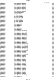 Tabelle1 KA 20/1492 Gebetbuch Koran (arabisch) 109 Gebetbuch Koran (arabisch) 109 Gebetbuch Koran (arabisch) 109 Gebetbuch Koran (arabisch) 109 Gebetbuch Koran (arabisch) 109 Gebetbuch Koran (arabisch) 109 Gebetbuch Koran (arabisch) 109 Gebetbuch Koran (arabisch) 109 Gebetbuch Koran (arabisch) 109 Gebetbuch Koran (arabisch) 109 Gebetbuch Koran (arabisch) 109 Gebetbuch Koran (arabisch) 109 Gebetbuch Koran (arabisch) 109 Gebetbuch Koran (arabisch) 109 Gebetbuch Koran (arabisch) 109 Gebetbuch Koran (arabisch) 109 Gebetbuch Der Heilige Koran (deutsch-arabisch) 109 Gebetbuch Der Heilige Koran (deutsch-arabisch) 109 Gebetbuch Der Heilige Koran (deutsch-arabisch) 109 Gebetbuch Der Heilige Koran (deutsch-arabisch) 109 Gebetbuch Der Heilige Koran (deutsch-arabisch) 109 Gebetbuch Der Heilige Koran (deutsch-arabisch) 109 Gebetbuch Der Heilige Koran (deutsch-arabisch) 109 Gebetbuch Der Heilige Koran (deutsch-arabisch) 109 Gebetbuch Der Heilige Koran (deutsch-arabisch) 109 Gebetbuch Koran (arabisch) 109 Gebetbuch Koran (arabisch) 109 Gebetbuch Der Koran (deutsch) 109 Gebetbuch Der Koran (deutsch) 109 Gebetbuch Der Koran (deutsch) 109 Gebetbuch Der Koran (deutsch) 109 Gebetbuch Der Koran (deutsch) 109 Gebetbuch Der Koran (deutsch) 109 Gebetbuch Der Koran (deutsch) 109 Gebetbuch Koran (arabisch - türkisch) 109 Gebetbuch Koran (arabisch - türkisch) 109 Gebetbuch Koran (arabisch - türkisch) 109 Gebetbuch Koran (arabisch - türkisch) 109 Gebetbuch Koran (arabisch - türkisch) 109 Gebetbuch Koran (arabisch - türkisch) 109 Gebetbuch Koran (arabisch - türkisch) 109 Gebetbuch Koran (arabisch - türkisch) 109 Gebetbuch Koran (arabisch - türkisch) 109 Gebetbuch Koran (arabisch - türkisch) 109 Gebetbuch Koran (arabisch - türkisch) 109 Gebetbuch Koran (arabisch) 109 Gebetbuch Der Heilige Koran (deutsch-arabisch) 109 Gebetbuch Der Heilige Koran (deutsch-arabisch) 109 Gebetbuch Der Heilige Koran (deutsch-arabisch) 109 Gebetbuch Koran (Slowenisch) 109 Gebetbuch Koran (arabisch - spanisch) 109 Gebetbuch Koran (arabisch - chinesisch) 109 Gebetbuch Koran (arabisch - englisch) 109 Gebetbuch Koran (arabisch - albanisch) 109 Gebetbuch Koran (arabisch - albanisch) 109 Gebetbuch Koran (arabisch - französisch) 109 Gebetbuch Koran (arabisch - französisch) 109 Seite 11