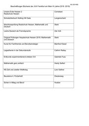 KA 20/1492 Beschaffungen Bücherei der JVA Frankfurt am Main III (Jahre 2018 -2019) Unsere Erde Hessen 2 Cornelsen Realschule Hessen Schulwörterbuch Notting Hill Gate Langenscheid Abschlussprüfung Realschule Hessen, Mathematik und Stark Deutsch Lextra Deutsch als Fremdsprache Ute Voß Original Prüfungen Hauptschule Hessen 2019, Mathematik Stark und Deutsch Kunst für Fachfremde und Berufseinsteiger Manfred Kiesel Legasthenie in der Sekundarstufe Cathrin Rattay Erdkunde experimentierend erleben 5-8 Gabriele Fuss Mathematik ganz einfach Hardy Seifert NS-Zeit und zweiter Weltkrieg Lars Gellner Bausteine 4, Förderheft Diesterweg Sicher in Alltag und Beruf Hueber