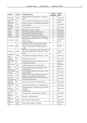 8 Hessischer Landtag · 20. Wahlperiode · Drucksache 20/2859 aktuelle aktuelle Landkreis Straße Projektbezeichnung Länge (km) Phase Radweg Dreieich/Sprendlingen - Neu-Isenburg (L Voruntersu- Offenbach L 3313 0,6 3317) chung Rheingau- L 3026 Radweg zwischen Idstein/Gänsberg und B 275 1,0 Vorentwurf Taunus-Kreis Rheingau- Zeitplan in L 3036 Ausbau Radweg zw. Eltville und Eltville/Martinsthal 0,1 Taunus-Kreis Abstimmung Schwalm- Radweg von Edermünde/Haldorf nach Eder- L 3316 1,0 Vorentwurf Eder-Kreis münde/Grifte Schwalm- Zeitplan in 2,1 Eder-Kreis L 3074 Neuental/Bischhausen - Bad Zwesten/Niederurff Abstimmung Schwalm- L 3316 Haldorf – Grifte 1 Vorentwurf Eder-Kreis Schwalm- Zeitplan in 5,9 Eder-Kreis L 3227 Spangenberg - Spangenberg/Pfieffe Abstimmung Stadt Frank- L 3209 Frankfurt/Bergen-Enkheim - Maintal/Bischofsheim 3,0 Vorentwurf furt am Main Stadt Wies- Radweg Wiesbaden/Nordenstadt Stolberger Str. L 3028 0,3 Bauentwurf baden zwischen Borsigstr. und Ostring Vogelsberg- Voruntersu- L 3325 Mücke/Ilsdorf - Einmündung B 49 0,6 kreis chung Werra-Meiß- Zeitplan in L 3249 Radweg zwischen der B27 und Sontra- Hornel 0,2 ner-Kreis Abstimmung Wetterau- L 3008 Bad Vilbel/Gronau – Niederdorfelden 2,0 Baurecht kreis Wetterau- L 3189 Altenstadt - Altenstadt/Oberau 1,0 Baurecht kreis Wetterau- L 3205 Bad Homburg/Ober-Erlenbach - Karben/Kloppen- 3,2 Baurecht kreis B3 heim, 2. Bauabschnitt Wetterau- L 3351 Friedberg (Fauerbach) - Friedberg/Dorheim 2,0 Vorentwurf kreis Wetterau- Zeitplan in L 3352 Radweg Karben/Petterweil nach Rosbach/Rodheim 1,4 kreis Abstimmung Frage 5. Wie wurde der Bau kommunaler Radwege in Limburg-Weilburg durch das Land mit Beratung und finanziellen Mitteln unterstützt? Neben dem vielseitigen Angebot der Arbeitsgemeinschaft Nahmobilität Hessen (AGNH - siehe ausführlich www.nahmobil-hessen.de) stehen Kreisen, Städten und Gemeinden in Hessen die Kompetenzzentren Verkehrsinfrastrukturförderung mit einem umfangreichen Beratungsangebot zur finanziellen Förderung zur Verfügung. Eine Statistik über die Beratungsleistungen der Kom- petenzzentren, der Nutzung des Internetangebots oder der unterschiedlichen Veranstaltungen der AGNH nach Projektstandorten bzw. Institutionen wird nicht geführt. Die Zusammenstellung der Förderung von Radwegen (einschließlich kombinierte Rad- und Geh- wege) in der Baulast von Kreisen, Städten und Gemeinden beruht auf unterschiedlichen Datenbe- ständen und Erfassungsmethodiken für die Jahre 2008 bis einschließlich 2016 bzw. ab dem Jahr 2017. Bis einschließlich 2016 sind Maßnahmen für den Radverkehr, die ein untergeordneter Teil einer Maßnahme für den Straßenbau (Aus-, Um- oder Neubau) waren, in der Regel nicht erfasst. Die konkreten Fördermaßnahmen sind beigefügter Anlage zu entnehmen. Wiesbaden, 19. August 2020 Tarek Al-Wazir Anlage(n): Die komplette Drucksache inklusive der Anlage(n) kann im Landtagsinformationssystem unter: http://starweb.hessen.de abgerufen werden.