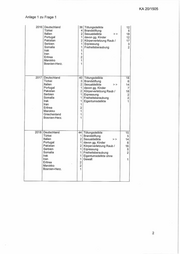 KA 20/1505 Anlage 1 zu Frage 1 2017 D eutsch 79 T ötungsdelikte 28 Jordanien 1 Brandstiftung 12 Syrien 1 S e xualdelikte 10 Italien 2 > > d avon gg. K in d e r 9 P ortugal 1 K örperverletzung Raub, 25 Türkei 2 Erpressung 5 Polen 1 Freiheitsberaubung 2 G riechenland 3 E igentum sdelikte 3 Iran 1 V e rstö ß e gg. W affenG 1 B ulgarien 1 V e rstö ß e gg. BtMG 7 T unesien 1 2018 D eutsch 79 T ötu ngsdelikte 22 Jordanien 1 Brandstiftung 13 Syrien 1 S exualdelikte 18 Italien 2 > > davon gg. K in d e r 7 P ortugal 1 K örperverletzung Raub, 30 Türkei 2 Erpressung 4 Polen 1 Freiheitsberaubung 1 G riechenland 2 E igentum sdelikte 1 Iran 1 V e rstö ß e gg. BtMG 3 B ulgarien 1 R um änien 1
