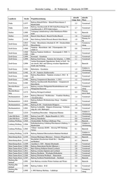 Hessischer Landtag · 20. Wahlperiode · Drucksache 20/3389 7 aktuelle aktuelle Landkreis Straße Projektbezeichnung Länge (km) Phase Marburg-Bie- L3125 Radweg Ebsdorfergrund Beltershausen – Marburg 2,6 Vorentwurf denkopf Radweg zw. Mainhausen (K 185) und Anschlussstelle Offenbach L2310 1,3 Vorentwurf Mainhausen (A 45) Radweg Seligenstadt/Froschhausen - Einmündung Zeitplan in Offenbach L2310 2,1 Daimlerstraße Abstimmung L2310 Radweg Einmündung Daimlerstraße - Tannmühlkreisel Zeitplan in Offenbach 1,3 B45 bei Obertshausen BUNDES + LANDESABSCHNITT Abstimmung Offenbach L3117 Radweg Gravenbruch – Heusenstamm 2,7 Vorentwurf Voruntersu- Offenbach L3117 Radweg Brandschneise – Gravenbruch 1,2 chung Radweg Neu-Isenburg/Zeppelinheim, Mitteldicker Weg Voruntersu- Offenbach L3262 5,3 - Dreieich/Buchschlag chung Voruntersu- Offenbach L3313 Radweg Dreieich/Sprendlingen - Neu-Isenburg (L 3317) 0,6 chung Rheingau-Taunus- L3026 Radweg zwischen Idstein/Gänsberg und B 275 1,0 Vorentwurf Kreis Rheingau-Taunus- Zeitplan in L3036 Ausbau Radweg zw. Eltville und Eltville/Martinsthal 0,1 Kreis Abstimmung Schwalm-Eder- Radweg von Edermünde/Haldorf nach Eder- L3316 1,0 Vorentwurf Kreis münde/Grifte Schwalm-Eder- Zeitplan in 2,1 Kreis L3074 Neuental/Bischhausen - Bad Zwesten/Niederurff Abstimmung Schwalm-Eder- L3316 Haldorf – Grifte 1 Vorentwurf Kreis Schwalm-Eder- Zeitplan in 5,9 Kreis L3227 Spangenberg - Spangenberg/Pfieffe Abstimmung Stadt Frankfurt am L3209 Frankfurt/Bergen-Enkheim - Maintal/Bischofsheim 3,0 Vorentwurf Main Radweg Wiesbaden/Nordenstadt Stolberger Str. Stadt Wiesbaden L3028 0,3 Bauentwurf zwischen Borsigstr. und Ostring Voruntersu- Vogelsbergkreis L3325 Mücke/Ilsdorf - Einmündung B 49 0,6 chung Werra-Meißner- Zeitplan in L3249 Radweg zwischen der B27 und Sontra- Hornel 0,2 Kreis Abstimmung Wetteraukreis L3008 Bad Vilbel/Gronau – Niederdorfelden 2,0 Baurecht Wetteraukreis L3189 Altenstadt - Altenstadt/Oberau 1,0 Baurecht L3205 Bad Homburg/Ober-Erlenbach - Karben/Kloppenheim, Wetteraukreis 3,2 Baurecht B 3 2. Bauabschnitt Wetteraukreis L3351 Friedberg (Fauerbach) - Friedberg/Dorheim 2,0 Vorentwurf Zeitplan in Wetteraukreis L3352 Radweg Karben/Petterweil nach Rosbach/Rodheim 1,4 Abstimmung Frage 4. Welche Kommunen im Landkreis Gießen wurden seit 2008 beim Bau kommunaler Radwege durch das Land finanziell unterstützt? Wie hoch waren die jeweilige Gesamtinvestition und der Förderanteil des Landes? Bitte nach Kommune, Radweg und Jahr aufschlüsseln!? Neben dem vielseitigen Angebot der Arbeitsgemeinschaft Nahmobilität Hessen (AGNH - siehe ausführlich www.nahmobil-hessen.de) stehen Kreisen, Städten und Gemeinden in Hessen die Kompetenzzentren Verkehrsinfrastrukturförderung mit einem umfangreichen Beratungsangebot zur finanziellen Förderung zur Verfügung. Eine Statistik über die Beratungsleistungen der Kom- petenzzentren, der Nutzung des Internetangebots oder der unterschiedlichen Veranstaltungen der AGNH nach Projektstandorten bzw. Institutionen wird nicht geführt. Die Zusammenstellung der Förderung von Radwegen (einschließlich kombinierte Rad- und Geh- wege) in der Baulast von Kreisen, Städten und Gemeinden beruht auf unterschiedlichen Datenbe- ständen und Erfassungsmethodiken für die Jahre 2008 bis einschließlich 2016 bzw. ab dem Jahr 2017. Bis einschließlich 2016 sind Maßnahmen für den Radverkehr, die ein untergeordneter Teil einer Maßnahme für den Straßenbau (Aus-, Um- oder Neubau) waren, in der Regel nicht erfasst. Teilweise sind Gesamtkosten nicht nach unterschiedlichen Projektbeteiligten getrennt erfasst, so dass für ein Projekt mit mehreren Beteiligten (z.B. Kommune, Versorgungsbetrieb, Kreis) die Gesamtkosten vollständig für den Antragsteller aufgeführt sind obwohl dieser nur einen Teil der Gesamtkosten übernommen und eine entsprechende Zuwendung für seinen Teil erhalten hat. Wiesbaden, 25. Oktober 2020 Tarek Al-Wazir
