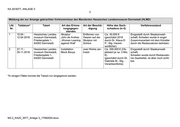 KA 20/3077 - Anlage 1 Auswertung des KPMD-PMK hinsichtlich hessischer Straftaten im Jahr 2019 mit dem Angriffsziel „Gedenkstätte“ Art des Höhe des Lfd. Art der Tatdatum Tatort Erinnerungs- Sachschadens Verfahrensstand Nr. Beschädigung gegenstandes (in €) 1 20.03.2019 Frankfurt am Denkmal Beschädigung durch 300 Einstellung gem. § 170 (2) StPO (kein Täter Main Farbe ermittelt) 2 31.05.2019 Meißner- Gedenkstätte Beschmutzung 100 Einstellung gem. § 170 (2) StPO (kein Täter Abterode ermittelt) 3 06.06.2019 Hadamar Gedenkstätte Substanzverletzung 200 Einstellung gem. § 170 (2) StPO (kein Täter ermittelt) 4 04.07.2019 Frankfurt am Gedenktafel Beschädigung durch 300 Einstellung gem. § 170 (2) StPO (kein Täter Main Farbe ermittelt) 5 13.08.2019 Darmstadt Gedenkstätte Beschädigung durch 250 Ermittlungen dauern an Farbe 6 17.08.2019 Heppenheim Gedenkstätte Beschmutzung 0 Einstellung gem. § 170 (2) StPO (kein Täter ermittelt) 7 06.09.2019 Marburg Gedenkstein Substanzverletzung 100 Einstellung gem. § 170 (2) StPO (kein Täter ermittelt) 8 12.10.2019 Höchst Gedenkstätte Beschmutzung 0 Einstellung gem. § 170 (2) StPO (kein Täter ermittelt) 9 15.10.2019 Bad Gedenktafel Substanzverletzung 393 Einstellung gem. § 170 (2) StPO (kein Täter Hersfeld ermittelt) Seite 1 von 2