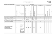 Technische Universität Darmstadt KA 20/1000 Anlagen WiSe 2014/15 Technische Universität Darmstadt WiSe 2014/15 1. Zeitraum 1. Umfang 2. Anzahl Stud. 3. Durchführung 4. Betreuungsrelation 5. Leistungsmessung wiss. Assistent/in od. Mitarbeiter/in weitere Leistungsnachweise* Studierende des Fachs insg. Teilnehmende Brückenkurs Übungsaufgabenkorrektur vorlesungsfreie Zeit semesterbegleitend prozentualer Anteil Lehrbeauftragte/r weiteres Personal* mündliche Prüfung (Lehrveran- Professor/in staltungs- (Quotient aus Anzahl Klausur stunden- Kurs-Studenten und Studienfach/Fachbereich/Fakultät anzahl) Anzahl Kurs-Dozenten) B.Sc. Bauingenieurwesen und Geodäsie sowie B.Sc. Umweltwissenschaften Vorbereitungskurs (VEMINT) x 409 152 37,0 k.A. Treffpunkt Mathematik für Bauing. x x 2 409 k.A. x x inkl. Klausurvorbereitungskurs B.Sc. Maschinenbau – Mechanical and Process-Engineering Vorbereitungskurs (VEMINT) x 402 226 56 k.A. 2 SWS (sem- begl.) plus Treffpunkt Mathematikfür 2h/Tag in Maschinenbau inkl. x x einer 432 200 46,3 x x k.A. Klausurvorbereitungskurs vorlesungsfre ien Woche als Klausurvorbe reitungskurs 6