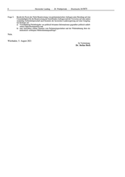 4 Hessischer Landtag · 20. Wahlperiode · Drucksache 20/5875 Frage 5. Beruht die Praxis der Nicht-Beantwortung von parlamentarischen Anfragen unter Berufung auf eine Unzuständigkeit für die Beantwortung der betreffenden Anfragen und des Verweises auf eine andere zuständige Gebietskörperschaft nach Kenntnis der hessischen Landesregierung auf einer festgeleg- ten Strategie zur a) Vorenthaltung/Nichtfreigabe von politisch brisanten Informationen gegenüber politisch unlieb- samen Oppositionsparteien und b) zum Ausschluss solcher Parteien vom Parlamentsgeschehen und der Wahrnehmung ihres de- mokratisch verbürgten Mitbestimmungsauftrags? Nein. Wiesbaden, 5. August 2021 In Vertretung: Dr. Stefan Heck
