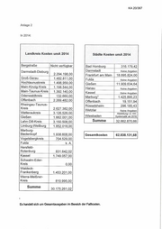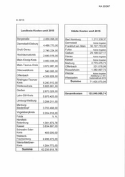 KA 20/367 In 2015: Landkreis Kosten umA 2015 Städte Kosten um A 2015 Bergstraße 2.069.898,00 Bad Homburg 1.211.338,37 Darmstadt-Dieburg Darmstadt Keine Angaben 4.486.773,00 Frankfurt am Main 36.707.753,00 Groß-Gerau 2.745.224,00 Fulda Keine Angaben Gießen 29.198.527,17 Hochtaunuskreis 2.640.518,00 Hanau Keine Angaben Main-Kinzig-Kreis Kassel Keine Angaben 3.853.036,00 Marburg 2.773.475,73 Main-Taunus-Kreis 3.672.987,00 Offenbach 331.078,99 Odenwaldkreis Rüsselsheim 1.382.897,72 540.085,00 Wetzlar Keine Angaben Offen bach 4.300.828,00 Abbildung i.d. HH- Wiesbaden Systematik ab 2016 Rheingau-Taunus- Kreis Summe 71.605.070,98 5.243.512,00 Wette rau kreis 5.825.861,00 Gießen 2.673.328,00 G esam tkosten 133.840.989,74 Lahn-Dill-Kreis 5.975.425,00 Limburg-Weilburg 3.298.211,00 Marburg- Biedenkopf 3.703.498,00 Vogelsbergkreis 2.204.018,00 Fulda k. A. Hersfeld- Rotenburg 1.391.572,76 Kassel 3.634.897,00 Schwalm-Eder- Kreis 405.000,00 Waldeck- Frankenberg 2.286.475,00 Werra-Meißner- Kreis 1.284.772,00 Summe 62.235.918,76