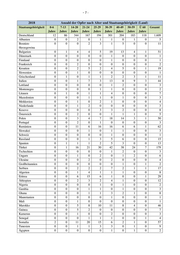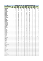 -9- 2019 Anzahl der Opfer nach Alter und Staatsangehörigkeit (Land) Staatsangehörigkeit 0-6 7-13 14-20 21-24 25-29 30-39 40-49 50-59 Ü 60 Gesamt Jahre Jahre Jahre Jahre Jahre Jahre Jahre Jahre Jahre Deutschland 9 70 310 167 190 299 218 172 85 1.520 Albanien 0 0 2 0 1 1 1 2 0 7 Bosnien- 0 0 2 4 2 5 3 2 2 20 Herzegowina Belgien 0 0 1 0 0 0 0 0 0 1 Bulgarien 1 1 5 4 9 12 7 1 1 41 Estland 0 0 0 0 0 0 0 1 0 1 Frankreich 0 0 0 0 2 1 0 0 0 3 Kroatien 0 0 8 2 5 5 3 3 0 26 Griechenland 0 0 0 1 0 1 2 1 4 9 Italien 0 1 3 2 5 8 10 2 4 35 Lettland 0 0 0 0 1 0 0 0 0 1 Montenegro 0 0 0 0 0 0 0 2 0 2 Litauen 0 0 2 0 0 3 4 0 0 9 Mazedonien 0 0 0 0 0 3 1 0 0 4 Moldawien 0 0 0 0 0 1 1 0 0 2 Niederlande 0 0 0 0 1 1 2 0 0 4 Norwegen 0 0 0 0 0 0 0 1 0 1 Kosovo 0 0 2 1 0 3 1 1 0 8 Österreich 0 0 1 0 0 2 0 0 0 3 Polen 0 0 10 7 8 19 20 1 5 70 Portugal 0 0 1 0 0 2 0 2 0 5 Rumänien 0 3 5 3 6 14 16 3 1 51 Slowakei 0 0 0 0 0 1 1 0 0 2 Schweden 0 0 0 0 0 1 1 0 0 2 Schweiz 0 0 0 1 0 0 0 0 0 1 Russland 0 0 1 0 0 1 3 0 0 5 Spanien 0 1 1 0 3 3 1 0 0 9 Türkei 0 3 12 26 19 44 36 21 4 165 Tschechien 0 0 1 0 0 1 0 0 0 2 Ungarn 0 0 0 0 1 0 0 1 0 2 Serbien 2 0 5 1 6 4 2 3 0 23 Algerien 0 0 2 3 3 3 1 1 2 15 Eritrea 0 0 4 14 12 7 2 0 0 39 Äthiopien 0 0 2 1 2 2 1 0 0 8 Benin 0 0 0 1 0 0 0 0 0 1 Elfenbeinküste 0 0 0 1 0 0 0 0 0 1 Nigeria 0 1 2 3 0 0 0 0 0 6 Gambia 0 0 1 0 0 2 0 0 0 3 Ghana 0 0 1 1 0 1 1 2 0 6 Kenia 0 0 0 0 0 1 0 0 0 1 Kongo, Rep. 0 0 0 0 0 0 1 0 0 1 Libyen 0 0 1 0 0 1 0 0 0 2 Mali 0 0 0 0 0 1 0 0 0 1 Marokko 0 1 1 2 3 10 10 2 1 30 Mosambik 0 0 1 0 0 0 0 0 0 1 Guinea-Bissau 0 0 1 0 0 0 0 0 0 1 Guinea 0 0 1 2 0 0 0 0 0 3