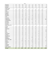 -8- Argentinien 0 0 0 0 0 2 0 0 0 2 Brasilien 0 0 0 2 0 1 0 0 0 3 Dominikanische Republik 0 0 0 0 0 0 1 0 0 1 Jamaika 0 0 0 2 1 7 2 0 0 12 USA 0 0 2 2 1 1 0 2 3 11 Jemen 0 0 1 0 0 0 0 0 0 1 Armenien 0 0 0 0 0 0 1 0 0 1 Afghanistan 0 1 65 26 26 19 6 5 2 150 Sri Lanka 0 0 0 0 0 0 1 0 1 2 Indien 0 0 0 0 3 3 1 0 1 8 Indonesien 0 0 0 0 0 0 0 0 1 1 Irak 0 0 4 4 13 5 2 4 0 32 Iran 2 0 9 4 10 10 4 5 0 44 Israel 0 0 0 0 1 1 0 0 0 2 Kasachstan 0 0 0 0 0 2 2 0 0 4 Jordanien 0 0 0 0 0 1 0 0 0 1 Libanon 0 0 0 0 1 1 2 0 0 4 Nepal 0 0 0 1 0 0 0 0 0 1 Bangladesch 0 0 1 1 1 1 0 1 1 6 Pakistan 1 1 8 3 8 12 2 1 2 38 Korea, Rep. (Süd) 0 0 1 0 0 0 0 0 0 1 Syrien 3 6 25 21 18 19 4 1 0 97 Thailand 0 0 1 0 0 0 0 0 0 1 China 0 0 0 0 1 0 1 1 0 3 staatenlos 0 0 1 0 0 0 0 0 0 1 ungeklärt 5 0 10 7 12 5 4 0 2 45 keine Angaben 1 0 1 1 3 3 1 2 1 13 Gesamt 26 99 558 358 420 579 367 267 151 2.825