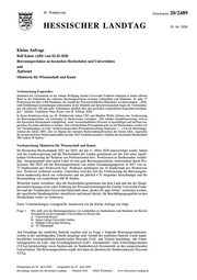 20. Wahlperiode Drucksache 20/2489 HESSISCHER LANDTAG 20. 04. 2020 Kleine Anfrage Rolf Kahnt (AfD) vom 02.03.2020 Betreuungsrelation an hessischen Hochschulen und Universitäten und Antwort Ministerin für Wissenschaft und Kunst Vorbemerkung Fragesteller: Studenten der Germanistik an der Johann Wolfgang Goethe-Universität Frankfurt beklagen in einem offenen Brief an die Präsidentin die schlechte Betreuungsrelation zwischen Lehrkräften und Studenten. Es gäbe 17 Professuren bei über 4.000 Studenten, die Anzahl der Wissenschaftlichen Mitarbeiter sei überschaubar. „Wäh- rend Einführungsveranstaltungen insbesondere in der Didaktik und Sprachwissenschaft liegen die Veranstaltun- gen mit teilweise 100 und mehr Teilnehmern deutlich über den gesetzlich vorgesehenen Kapazitätsverordnun- gen.“ (Quelle: Frankfurter Neue Presse vom 28. Februar 2020) In ihrem Koalitionsvertrag zur 20. Wahlperiode haben CDU und Bündnis 90/Die Grünen eine Verbesserung der Betreuungsrelation von Lehrenden zu Studierenden vereinbart: „Die erhöhte Grundfinanzierung wird es den hessischen Hochschulen ermöglichen, mehr wissenschaftliches Personal zu beschäftigen und befristet ein- gestelltes Personal entfristen zu können. Den erforderlichen Personalaufwuchs an den Hochschulen werden wir mit Vereinbarungen zu einer verantwortungsvollen Personalentwicklung flankieren. (…) Um die Betreuungs- relation des Jahres 2005, also vor Beginn des enormen Studierendenaufwuchses der letzten Jahre, angesichts der prognostizierten Studierendenzahlen im Jahr 2025 wiederherzustellen, erhalten die hessischen Hochschulen 300 weitere W-Stellen.“ Vorbemerkung Ministerin für Wissenschaft und Kunst: Im Hessischen Hochschulpakt 2021 bis 2025, der am 11. März 2020 unterzeichnet wurde, haben sich die Landesregierung und die Hochschulen des Landes gemeinsam auf das Ziel einer signifi- kanten Verbesserung der Relation von Professorinnen bzw. Professoren zu Studierenden verstän- digt. Ausgangspunkt einer guten Lehre ist eine gute Betreuungsrelation, insbesondere durch Pro- fessuren. Bis 2025 soll die Betreuungsrelation von einem Gesamtausgangswert in 2017 von ca. 72 Studierenden pro Professorin bzw. Professor mindestens um 10 Studierende pro Professorin bzw. Professor verbessert werden. Unterstützt wird das Ziel der Verbesserung der Betreuungsre- lation landesseitig durch ein verbreitertes und um jährlich 4 % steigendes Sockelbudget und die Bereitstellung von zusätzlichen 300 W-Stellen. Weiterhin wurde vereinbart, dass die Hochschulen gemeinsam mit dem Land und mit der Haupt- personalvertretung sowie unter Einbezug der Personalvertretungen der Goethe-Universität Frank- furt und der Technischen Universität Darmstadt einen „Kodex für gute Arbeit“ erarbeiten werden, der spezifische Handlungsfelder identifiziert und darauf abzielt, die Beschäftigungsqualität an den Hochschulen weiter zu verbessern. Diese Vorbemerkungen vorangestellt, beantworte ich die Kleine Anfrage wie folgt: Frage 1. Wie stellt sich die Betreuungsrelation von Lehrkräften zu Studentinnen und Studenten im Bereich Germanistik an den folgenden Universitäten in Hessen dar: a) Universität Kassel, b) Justus-Liebig-Universität Gießen, c) Philipps-Universität Marburg, d) TU Darmstadt? Auf Grundlage der amtlichen Statistik ergeben sich zu Frage 1 folgende Betreuungsrelationen, welche in der nachfolgenden Tabelle dargelegt sind. Gemäß der amtlichen Statistik wurde haupt- berufliches wissenschaftlich-künstlerisches Personal (Voll- und Teilzeit beschäftigt, alle Finan- zierungsarten) im Lehr- und Forschungsbereich (LuF) „Germanistik“ nach Vollzeitäquivalenten (VZÄq) berücksichtigt sowie Studierende im Studienbereich Germanistik an den entsprechenden Universitäten. Die Betreuungsrelation ergibt sich dann als Quotient der Studierenden pro Personal VZÄq. Eingegangen am 20. April 2020 · Ausgegeben am 23. April 2020 Herstellung: Kanzlei des Hessischen Landtags · Postfach 3240 · 65022 Wiesbaden · www.Hessischer-Landtag.de