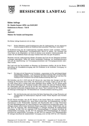 20. Wahlperiode Drucksache 20/1352 HESSISCHER LANDTAG 25. 11. 2019 Kleine Anfrage Dr. Daniela Sommer (SPD) vom 30.09.2019 Kinderärzte in Hessen – Teil II und Antwort Minister für Soziales und Integration Die Kleine Anfrage beantworte ich wie folgt: Frage 1. Welche Maßnahmen ergreift beziehungsweise plant die Landesregierung, um eine angemessene Grundversorgung im Bereich der Kinderärzte/innen anzustreben? Wenn keine, warum nicht? Im Koalitionsvertrag der die Landesregierung tragenden Parteien wurde vereinbart, Gemein- schaftspraxen und Medizinische Versorgungszentren (MVZ) zu stärken. Für Ärztinnen und Ärzte bieten sie die Möglichkeit, im Team zu arbeiten sowie attraktive Arbeitszeitmodelle. Be- sonders für den ländlichen Raum und junge Familien bietet dies eine gute Perspektive. Weiterhin wird die Landesregierung (Kinder-)Ärztinnen und Ärzte bei der Delegation ärztlicher Leistungen unterstützen. Neben der bereits bestehenden Förderung von Gemeindeschwestern soll auch die Qualifizierung von Versorgungsassistentinnen und Versorgungsassistenten unter- stützt werden. Das Land wird eine Serviceeinheit zur Beratung von Kommunen schaffen, die bei der Weiter- entwicklung der Gesundheitsversorgung oder bei Problemen in der ärztlichen Versorgung vor Ort unterstützt. Frage 2. Wie haben sich die Wartezeiten der Versicherten – ausgenommen von Not- und dringend behand- lungsbedürftigen Akutfällen – in der gesetzlichen Krankenversicherung (GKV) auf einen Kinder- ärztinnen-/Kinderarzttermin in den vergangenen fünf Jahren entwickelt und wie sieht diese Ent- wicklung bei den Versicherten in der privaten Krankenversicherung (PKV) aus? Mit Schreiben vom 04.11.2019 teilt die KV Hessen mit, man könne eine Aussage zu der Ent- wicklung der Wartezeiten nicht treffen. Die Wartezeiten auf Termine werden von der KV Hes- sen nicht erfasst und es werden auch keine Statistiken hierzu geführt. Die KV Hessen greife aber auf die Erfahrungen der Terminservicestelle (TSS) zurück, die nicht auf Probleme hindeu- ten. Insbesondere gelte dies auch für die seit Mai 2019 angebotene Unterstützung bei der Suche nach dauerhaft betreuenden Kinderärztinnen und -ärzten. Nach Auskunft der KV Hessen seien die bisherigen Erfahrungen der TSS hinsichtlich der Terminkoordination durchweg positiv. Frage 3. Wie viele Beschwerden sind in den letzten fünf Jahren Stand heute über zu lange Wartezeiten und Aufnahmestopps bei Kinderarztpraxen eingereicht worden? Welche Regionen waren besonders betroffen? Die KV Hessen berichtet, dass die KV Hessen in den letzten Jahren nur vereinzelt Anfragen von Patientinnen und Patienten bzw. deren Eltern erreicht habe, die Kontaktadressen von Kin- derarztpraxen in ihrer Wohnortnähe wünschten oder Beschwerden über zu lange Wartezeiten auf einen Behandlungstermin bei einem Kinderarzt oder Kinderärztin herangetragen hatten. Die Anfragen können jedoch keiner bestimmten Region zugeordnet werden. Konkret hatte man im Jahr 2015 bei insgesamt 1981 Patientenanfragen 13 Anfragen betreffend die kinderärztliche Versorgung, im Jahr 2016 bei insgesamt 2355 Patientenanfragen 23 Anfragen betreffend die kinderärztliche Versorgung, im Jahr 2017 bei insgesamt 2678 Patientenanfragen 44 Anfragen betreffend die kinderärztliche Versorgung, im Jahr 2018 bei insgesamt 3219 Patientenanfragen 94 Anfragen betreffend die kinderärztliche Versorgung sowie im Jahr 2019 bei 1251 Patienten- Eingegangen am 25. November 2019 · Bearbeitet am 25. November 2019 · Ausgegeben am 27. November 2019 Herstellung: Kanzlei des Hessischen Landtags · Postfach 3240 · 65022 Wiesbaden · www.Hessischer-Landtag.de