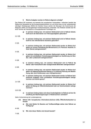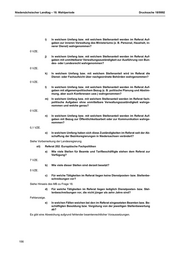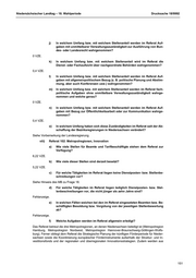 Niedersächsischer Landtag – 18. Wahlperiode Drucksache 18/9992 d) Für welche Tätigkeiten im Referat liegen lediglich Dienstposten- bzw. Stel- lenbeschreibungen vor, die nicht jünger als zehn Jahre sind? Fehlanzeige. e) In welchen Fällen weichen bei den im Referat eingesetzten Beamten bzw. Be- schäftigten Besoldung bzw. Vergütung von der jeweiligen Stellenbewertung ab? Es gibt eine Abweichung aufgrund fehlender beamtenrechtlicher Voraussetzungen. f) Welche Aufgaben werden im Referat allgemein erledigt? Im Referat 103 werden die Aufgaben der Verwaltungsbehörde EFRE und ESF erledigt. Die Haupt- aufgabe liegt in der Erstellung eines Operationellen Programms für den Europäischen Strukturfonds für regionale Entwicklung (EFRE) und den Europäischen Sozialfonds (ESF), um dieses bei der Eu- ropäischen Kommission zur Genehmigung einzureichen. Während der jeweils siebenjährigen Pro- grammlaufzeit ist die Verwaltungsbehörde für die EU-konforme Umsetzung der Fördermaßnahmen verantwortlich. Des Weiteren gehört die strategische Planung der jeweiligen Förderperiode zu den Aufgaben des Referats. Die strategische und ressortübergreifende Koordinierung des Europäischen Landwirtschaftsfonds für die Entwicklung des ländlichen Raums (ELER) gehört ebenfalls zu dem Aufgabengebiet des Refe- rats. g) In welchem Umfang bzw. mit welchem Stellenanteil wird im Referat Arbeits- kraft durch die Übernahme von Führungsaufgaben gebunden? 1,0 VZE. h) In welchem Umfang bzw. mit welchem Stellenanteil wird im Referat Arbeits- kraft für eine referatsinterne Assistenz gebunden? 0,05 VZE. i) In welchem Umfang bzw. mit welchem Stellenanteil werden im Referat Auf- gaben zur inneren Verwaltung des Ministeriums (z. B. Personal, Haushalt, in- nerer Dienst) wahrgenommen? 0,1 VZE. j) In welchem Umfang bzw. mit welchem Stellenanteil werden im Referat Auf- gaben mit unmittelbarer Verwaltungszuständigkeit zur Ausführung von Bun- des- oder Landesrecht wahrgenommen? 0 VZE. k) In welchem Umfang bzw. mit welchem Stellenanteil wird im Referat die Dienst- oder Fachaufsicht über nachgeordnete Behörden wahrgenommen? 2,0 VZE. l) In welchem Umfang bzw. mit welchem Stellenanteil werden im Referat Auf- gaben mit allgemeinpolitischem Bezug (z. B. politische Planung und Abstim- mung, aber auch Konferenzen usw.) wahrgenommen? m) In welchem Umfang bzw. mit welchem Stellenanteil werden im Referat fach- politische Aufgaben ohne unmittelbare Verwaltungszuständigkeit wahrge- nommen und welche genau? 0 VZE. n) In welchem Umfang bzw. mit welchem Stellenanteil werden im Referat Auf- gaben mit Bezug zur Öffentlichkeitsarbeit oder zur Kommunikation wahrge- nommen? 0,05 VZE. 153