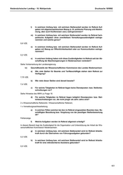 Niedersächsischer Landtag – 18. Wahlperiode Drucksache 18/9992 l) In welchem Umfang bzw. mit welchem Stellenanteil werden im Referat Auf- gaben mit allgemeinpolitischem Bezug (z. B. politische Planung und Abstim- mung, aber auch Konferenzen usw.) wahrgenommen? m) In welchem Umfang bzw. mit welchem Stellenanteil werden im Referat fach- politische Aufgaben ohne unmittelbare Verwaltungszuständigkeit wahrge- nommen und welche genau? 0,6 VZE. n) In welchem Umfang bzw. mit welchem Stellenanteil werden im Referat Auf- gaben mit Bezug zur Öffentlichkeitsarbeit oder zur Kommunikation wahrge- nommen? 0,2 VZE. o) In welchem Umfang haben sich diese Zuständigkeiten im Referat seit der Ab- schaffung der Bezirksregierungen in Niedersachsen verändert? Siehe Vorbemerkung der Landesregierung. iv) Geschäftsstelle der Wissenschaftlichen Kommission des Landes Niedersachsen a) Wie viele Stellen für Beamte und Tarifbeschäftigte stehen dem Referat zur Verfügung? 7,75 VZE. b) Wie viele dieser Stellen sind derzeit besetzt? 7,4 VZE. c) Für welche Tätigkeiten im Referat liegen keine Dienstposten- bzw. Stellenbe- schreibungen vor? Siehe Hinweise des MWK zu Frage 18. d) Für welche Tätigkeiten im Referat liegen lediglich Dienstposten- bzw. Stel- lenbeschreibungen vor, die nicht jünger als zehn Jahre sind? 2 x Wissenschaftliche Referentin / Wissenschaftlicher Referent, 1 x Verwaltungssachbearbeitung. e) In welchen Fällen weichen bei den im Referat eingesetzten Beamten bzw. Be- schäftigten Besoldung bzw. Vergütung von der jeweiligen Stellenbewertung ab? Fehlanzeige. f) Welche Aufgaben werden im Referat allgemein erledigt? In diesem Bereich liegt die Zuständigkeit für die Organisation und Unterstützung der Arbeit der Wis- senschaftlichen Kommission Niedersachsen. g) In welchem Umfang bzw. mit welchem Stellenanteil wird im Referat Arbeits- kraft durch die Übernahme von Führungsaufgaben gebunden? 0,3 VZE. h) In welchem Umfang bzw. mit welchem Stellenanteil wird im Referat Arbeits- kraft für eine referatsinterne Assistenz gebunden? 0,5 VZE. 401