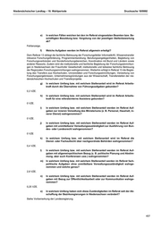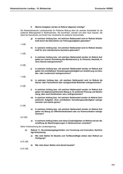 Niedersächsischer Landtag – 18. Wahlperiode Drucksache 18/9992 f) Welche Aufgaben werden im Referat allgemein erledigt? Die Niedersächsische Landeszentrale für Politische Bildung dient als zentrale Anlaufstelle für die politische Bildungsarbeit in Niedersachsen. Sie koordiniert, vernetzt und setzt neue Impulse. Sie stärkt die Demokratie und fördert das Verständnis für politische Sachverhalte. g) In welchem Umfang bzw. mit welchem Stellenanteil wird im Referat Arbeits- kraft durch die Übernahme von Führungsaufgaben gebunden? 1 VZE. h) In welchem Umfang bzw. mit welchem Stellenanteil wird im Referat Arbeits- kraft für eine referatsinterne Assistenz gebunden? 1 VZE. i) In welchem Umfang bzw. mit welchem Stellenanteil werden im Referat Auf- gaben zur inneren Verwaltung des Ministeriums (z. B. Personal, Haushalt, in- nerer Dienst) wahrgenommen? 0 VZE. j) In welchem Umfang bzw. mit welchem Stellenanteil werden im Referat Auf- gaben mit unmittelbarer Verwaltungszuständigkeit zur Ausführung von Bun- des- oder Landesrecht wahrgenommen? 1 VZE. k) In welchem Umfang bzw. mit welchem Stellenanteil wird im Referat die Dienst- oder Fachaufsicht über nachgeordnete Behörden wahrgenommen? 0 VZE. l) In welchem Umfang bzw. mit welchem Stellenanteil werden im Referat Auf- gaben mit allgemeinpolitischem Bezug (z. B. politische Planung und Abstim- mung, aber auch Konferenzen usw.) wahrgenommen? m) In welchem Umfang bzw. mit welchem Stellenanteil werden im Referat fach- politische Aufgaben ohne unmittelbare Verwaltungszuständigkeit wahrge- nommen und welche genau? 0 VZE. n) In welchem Umfang bzw. mit welchem Stellenanteil werden im Referat Auf- gaben mit Bezug zur Öffentlichkeitsarbeit oder zur Kommunikation wahrge- nommen? 0,5 VZE. o) In welchem Umfang haben sich diese Zuständigkeiten im Referat seit der Ab- schaffung der Bezirksregierungen in Niedersachsen verändert? Siehe Vorbemerkung der Landesregierung. vi) Referat 11: Grundsatzangelegenheiten von Forschung und Innovation, Nachhal- tige Entwicklung a) Wie viele Stellen für Beamte und Tarifbeschäftigte stehen dem Referat zur Verfügung? 6,75 VZE. b) Wie viele dieser Stellen sind derzeit besetzt? 6,75 VZE. 403