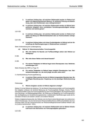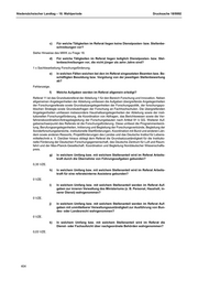 Niedersächsischer Landtag – 18. Wahlperiode Drucksache 18/9992 c) Für welche Tätigkeiten im Referat liegen keine Dienstposten- bzw. Stellenbe- schreibungen vor? Siehe Hinweise des MWK zu Frage 18. d) Für welche Tätigkeiten im Referat liegen lediglich Dienstposten- bzw. Stel- lenbeschreibungen vor, die nicht jünger als zehn Jahre sind? 1 x Sachbearbeitung Forschungsförderung. e) In welchen Fällen weichen bei den im Referat eingesetzten Beamten bzw. Be- schäftigten Besoldung bzw. Vergütung von der jeweiligen Stellenbewertung ab? Fehlanzeige. f) Welche Aufgaben werden im Referat allgemein erledigt? Referat 11 ist das Grundsatzreferat der Abteilung 1 für den Bereich Forschung und Innovation. Neben allgemeinen Angelegenheiten der Abteilung umfassen die Aufgaben übergreifende Angelegenheiten der Forschungsreferate sowie Grundsatzangelegenheiten der Forschungspolitik, der forschungspo- litischen Strategie sowie Grundsatzfragen der Forschung an Fachhochschulen. Die übergreifenden Angelegenheiten umfassen insbesondere Haushaltsangelegenheiten der Abteilung sowie der insti- tutionellen Forschungsförderung, die Koordination von Abfragen, das Berichtswesen sowie die Ver- fahrenskoordination/Antragsbegleitung der Forschungsbauten nach Artikel 91 b GG. Weiterer Auf- gabenschwerpunkt des Referats ist die Forschungsförderung. Diese umfasst die Programmentwick- lung, Berufungsangelegenheiten, Initiierung und Begleitung der Forschungsverbünde, Begleitung der Sonderforschungsbereiche, institutionelle Startförderungen, Koordination mit Bund und anderen Län- dern sowie anderen Ressorts, Projektförderungen des Landes und das Deutsche Institut für Lebens- mitteltechnik e. V. Darüber hinaus obliegt dem Referat die Grundsatzzuständigkeit für die Institutio- nelle Förderung der Deutschen Forschungsgemeinschaft, des Deutsche Zentrum für Luft und Raum- fahrt und der Max-Planck-Gesellschaft. Koordination und Begleitung Norddeutscher Wissenschafts- preis. g) In welchem Umfang bzw. mit welchem Stellenanteil wird im Referat Arbeits- kraft durch die Übernahme von Führungsaufgaben gebunden? 0,35 VZE. h) In welchem Umfang bzw. mit welchem Stellenanteil wird im Referat Arbeits- kraft für eine referatsinterne Assistenz gebunden? 0 VZE. i) In welchem Umfang bzw. mit welchem Stellenanteil werden im Referat Auf- gaben zur inneren Verwaltung des Ministeriums (z. B. Personal, Haushalt, in- nerer Dienst) wahrgenommen? 0 VZE. j) In welchem Umfang bzw. mit welchem Stellenanteil werden im Referat Auf- gaben mit unmittelbarer Verwaltungszuständigkeit zur Ausführung von Bun- des- oder Landesrecht wahrgenommen? 0 VZE. k) In welchem Umfang bzw. mit welchem Stellenanteil wird im Referat die Dienst- oder Fachaufsicht über nachgeordnete Behörden wahrgenommen? 0,03 VZE. 404
