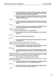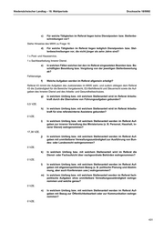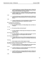 Niedersächsischer Landtag – 18. Wahlperiode Drucksache 18/9992 l) In welchem Umfang bzw. mit welchem Stellenanteil werden im Referat Auf- gaben mit allgemeinpolitischem Bezug (z. B. politische Planung und Abstim- mung, aber auch Konferenzen usw.) wahrgenommen? m) In welchem Umfang bzw. mit welchem Stellenanteil werden im Referat fach- politische Aufgaben ohne unmittelbare Verwaltungszuständigkeit wahrge- nommen und welche genau? 3,2 VZE. n) In welchem Umfang bzw. mit welchem Stellenanteil werden im Referat Auf- gaben mit Bezug zur Öffentlichkeitsarbeit oder zur Kommunikation wahrge- nommen? 3,1 VZE. o) In welchem Umfang haben sich diese Zuständigkeiten im Referat seit der Ab- schaffung der Bezirksregierungen in Niedersachsen verändert? Siehe Vorbemerkung der Landesregierung. iii) Referat 101: Ressortkoordinierung und -planung MF, MI a) Wie viele Stellen für Beamte und Tarifbeschäftigte stehen dem Referat zur Verfügung? 6,3 VZE. b) Wie viele dieser Stellen sind derzeit besetzt? 6,3 VZE. c) Für welche Tätigkeiten im Referat liegen keine Dienstposten- bzw. Stellenbe- schreibungen vor? Tätigkeiten Referentin/Referent Ressortkoordinierung und -planung MI, Tätigkeiten Sachbearbeiterin/Sachbearbeiter Ressortkoordinierung MI (Migration). d) Für welche Tätigkeiten im Referat liegen lediglich Dienstposten- bzw. Stel- lenbeschreibungen vor, die nicht jünger als zehn Jahre sind? Fehlanzeige. e) In welchen Fällen weichen bei den im Referat eingesetzten Beamten bzw. Be- schäftigten Besoldung bzw. Vergütung von der jeweiligen Stellenbewertung ab? Abweichung bei einer Person, die im Wege der Abordnung einen festen Dienstposten im Referat wahrnimmt, der nicht mit einer Planstelle und entsprechendem Beschäftigungsvolumen hinterlegt ist (Allgemeiner Haushaltsvermerk zum Beschäftigungsvolumen im Kapitel 02 01). f) Welche Aufgaben werden im Referat allgemein erledigt? Ressortkoordinierung und -planung für die Aufgabenbereiche des Ministeriums für Inneres und Sport und des Finanzministeriums. g) In welchem Umfang bzw. mit welchem Stellenanteil wird im Referat Arbeits- kraft durch die Übernahme von Führungsaufgaben gebunden? 0,6 VZE. h) In welchem Umfang bzw. mit welchem Stellenanteil wird im Referat Arbeits- kraft für eine referatsinterne Assistenz gebunden? 0 VZE. 439