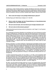 LANDTAG NORDRHEIN-WESTFALEN - 17. Wahlperiode Drucksache 17/14373 Landeszeitung, Haller Kreisblatt, Mindener Tageblatt, Westfälische Nachrichten, Münstersche Zeitung, Ahlener Zeitung, Tageblatt für den Kreis Steinfurt, Ibbenbürener Volkszeitung, Müns- terländische Volkszeitung Rheine, Allgemeine Zeitung Coesfeld, Borkener Zeitung, Dülmener Zeitung, Emsdettener Zeitung, Die Glocke, Westfalen-Blatt, Siegener Zeitung und BILD NRW. 2. Wann wurde die Anzeige in den jeweiligen Medienhäusern gebucht? Die Beauftragung der Medienhäuser erfolgte am 31. Mai 2021. 3. Warum wurde die Anzeige nach der Pressemitteilung von Gesundheitsminister Laumann vom 2. Juni nicht storniert? 4. Wie hoch sind die Kosten, die für die Buchung der Anzeige entstanden sind? 5. Wie hoch wären die Stornokosten gewesen? Aufgrund des Sachzusammenhangs werden die Antworten zu den Fragen 3, 4 und 5 gemein- sam beantwortet. Der Landesregierung Nordrhein-Westfalen ist es seit Beginn der Corona-Pandemie ein großes Anliegen, die Bürgerinnen und Bürger des Landes über alle Entwicklungen und Entscheidun- gen frühzeitig und umfassend zu informieren. Das gilt auch und besonders im Zuge der bislang größten Impfkampagne unseres Landes: Die Landesregierung informiert seit Monaten über den Ablauf, neue Entwicklungen und den Fortschritt der Impfkampagne. Dies geschieht ebenso über die eigenen Kanäle der Landesregierung – online auf land.nrw und über die Social-Media-Kanäle – wie unter anderem durch Pressemitteilungen, Presse-Briefings und Zeitungsanzeigen, um möglichst breite Teile der Bevölkerung zum Thema Impfen auf dem Laufenden zu halten. Mit der am Samstag, 5. Juni 2021 landesweit in Tageszeitungen geschalteten Anzeige erinnert die Landesregierung noch einmal ganz aktuell an die Aufhebung der Impfpriorisierung ab Mon- tag, 7. Juni 2021. Dieses Datum stellt einen Meilenstein dar: Ab jetzt können alle Bürgerinnen und Bürger einen Impftermin vereinbaren – unabhängig von Alter, Vorerkrankungen oder Be- ruf. In der mit „im Juni: Impftermin buchen“ überschriebenen Anzeige steht ausdrücklich nicht, dass jede und jeder Impfwillige bereits am 7. Juni einen Impftermin vereinbaren kann; sondern, dass dies in den Tagen und Wochen ab dem 7. Juni möglich ist – ein wichtiger Hinweis für die Bevölkerung im Sinne des gesetzlichen Auftrags zur Informationsvermittlung seitens der Lan- desregierung. In diesem Zusammenhang wurden auch am Freitag, 4. Juni 2021, erneut aktualisierte Q&A (Fragen & Antworten) den Bürgerinnen und Bürgern online zur Verfügung gestellt. Darin wer- den relevante Themen wie u.a. der Impffortschritt, die Einbeziehung von Betriebsärzten sowie die stärkere Rolle der Hausärzte ausführlich erläutert. Zudem wird darauf hingewiesen, dass im Laufe des Sommers ausreichend Impfstoff zur Verfügung stehen wird und die Termin- vergabe in den Tagen und Wochen nach dem 7. Juni 2021 möglich ist. Bis dahin, auch das greift die Anzeige explizit auf, ist auch noch Geduld gefragt. Dies betrifft auch die Terminbuchung in den Impfzentren: Das nordrhein-westfälische Gesundheitsminis- terium hatte in der ersten Juniwoche mitgeteilt, dass der vom Bund zur Verfügung gestellte Impfstoff bis Mitte Juni komplett für Zweitimpfungen genutzt und zunächst keine neuen Ter- mine für Erstimpfungen in den Impfzentren zur Verfügung stehen. 2