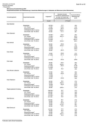 Information und Technik Seite 91 von 92 Nordrhein-Westfalen – Pressestelle – Mikrozensus-Zusatzerhebung 2010 Hauptmieterhaushalte nach Mietbelastung in bewohnten Mietwohnungen in Gebäuden mit Wohnraum (ohne Wohnheime) Darunter mit einer Durchschnittliche 1) monatlichen Mietbelastung Insgesamt Mietbelastungs- Verwaltungsbezirk Hauptmieterhaushalte von über 30 Prozent des quote Haushaltsnettoeinkommens Anzahl in Prozent Stadt Hagen Zusammen 49 000 38,3 28,2 r mit 1 Person 22 000 (54,7) r 33,4 Seniorenhaushalte 2) (13 000) / (30,1) mit Kind(ern) unter 18 Jahren (10 000) / (27,8) r ohne Kinder unter 18 Jahren 39 000 (37,7) r 28,2 Stadt Hamm Zusammen 28 000 (40,9) r 27,7 mit 1 Person (10 000) (56,8) r (31,3) Seniorenhaushalte 2) (6 000) / (30,0) mit Kind(ern) unter 18 Jahren (8 000) / (26,2) ohne Kinder unter 18 Jahren 20 000 (42,5) r 28,3 Stadt Herne Zusammen 48 000 31,6 27,2 mit 1 Person 21 000 (49,5) r 32,3 Seniorenhaushalte 2) (14 000) (41,9) (29,6) mit Kind(ern) unter 18 Jahren (9 000) / (25,3) ohne Kinder unter 18 Jahren 39 000 (33,7) r 27,7 Ennepe-Ruhr-Kreis Zusammen 76 000 33,0 26,5 mit 1 Person 35 000 48,2 r 30,9 2) Seniorenhaushalte 18 000 (42,0) r 29,5 mit Kind(ern) unter 18 Jahren 15 000 / 25,7 ohne Kinder unter 18 Jahren 61 000 34,3 r 26,7 Hochsauerlandkreis Zusammen 34 000 (35,2) 26,4 mit 1 Person 15 000 (46,7) 29,2 Seniorenhaushalte 2) (7 000) / (28,4) mit Kind(ern) unter 18 Jahren (6 000) / (25,9) ohne Kinder unter 18 Jahren 28 000 (35,1) 26,5 Märkischer Kreis Zusammen 84 000 37,4 r 27,4 mit 1 Person 37 000 49,2 30,3 r 2) Seniorenhaushalte 17 000 (49,4) r 30,1 mit Kind(ern) unter 18 Jahren 18 000 (32,3) 27,1 ohne Kinder unter 18 Jahren 65 000 38,9 27,5 Kreis Olpe Zusammen 18 000 (36,4) 26,6 mit 1 Person (8 000) / (29,5) 2) Seniorenhaushalte / / / mit Kind(ern) unter 18 Jahren / / / ohne Kinder unter 18 Jahren (13 000) / (26,9) Kreis Siegen-Wittgenstein Zusammen 36 000 r (32,7) 26,7 mit 1 Person 16 000 r (41,3) r 29,2 Seniorenhaushalte 2) (6 000) / (32,7) mit Kind(ern) unter 18 Jahren (9 000) / (27,5) r ohne Kinder unter 18 Jahren 28 000 (31,3) r 26,4 Kreis Soest Zusammen 41 000 (32,3) 26,6 mit 1 Person 19 000 (46,5) 30,5 Seniorenhaushalte 2) (8 000) / (30,2) mit Kind(ern) unter 18 Jahren (9 000) / (25,4) ohne Kinder unter 18 Jahren 32 000 (34,5) 27,0 Kreis Unna Zusammen 80 000 34,3 r 27,7 mit 1 Person 34 000 49,9 r 32,6 r Seniorenhaushalte 2) 18 000 (40,8) 30,7 mit Kind(ern) unter 18 Jahren 19 000 (29,3) r 25,5 ohne Kinder unter 18 Jahren 61 000 35,8 28,3 __________________________ Fußnoten siehe Ende Kreistabelle