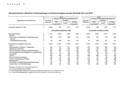 A n l a g e 3 *) Gesamteinnahmen, öffentliche Transferzahlungen und Konsumausgaben privater Haushalte 2013 und 2018 2013 2018 Darunter Familien/Haushalte/Paare mit Darunter Familien/Haushalte/Paare mit Gegenstand der Nachweisung Haushalte Kind(ern) Haushalte Kind(ern) insgesamt Allein- 2) sonstige insgesamt Allein- 2) sonstige 1) Paare 3) 1) Paare 3) erziehende Haushalte erziehende Haushalte Haushalte insgesamt (1 000) 8 460 276 1 212 1 137 8 679 259 1 227 1 111 je Haushalt und Monat in EUR je Haushalt und Monat in EUR Gesamteinnahmen 5 118 4 349 7 292 7 060 5 959 3 684 9 337 7 847 Darunter Einkommen aus öffentlichen Transferzahlungen 909 675 658 915 1 008 752 735 997 Darunter Kindergeld/Kinderzuschlag 92 249 332 231 91 266 351 221 Private Konsumausgaben zusammen 2 503 2 054 3 438 3 427 2 745 2 378 3 933 3 677 Davon Nahrungsmittel, Getränke u. Tabakwaren 351 313 517 523 370 344 555 540 Bekleidung und Schuhe 125 126 205 186 129 140 212 196 Wohnen, Energie und Wohnungsinstandhaltung 881 782 1 134 1 149 937 831 1 218 1 225 Innenausstattung, Haushaltsgeräte und -gegenstände 122 91 184 166 135 119 210 171 Gesundheit 104 44 108 116 116 85 112 127 Verkehr 335 248 470 513 380 290 615 550 Post und Telekommunikation 68 72 91 96 72 67 99 98 Freizeit, Unterhaltung und Kultur 259 191 369 339 300 242 437 386 Bildungswesen 21 26 58 41 29 40 98 49 Gaststätten- und Beherbergungsdienstleistungen 134 77 167 163 165 111 225 201 andere Waren und Dienstleistungen 102 84 136 136 113 109 153 134 ------ *) Ergebnisse der Einkommens- und Verbrauchsstichprobe 1) Mit ledigem(n) Kind(ern) unter 18 Jahren. 2) Ledige(s) Kind(er) unter 18 Jahren der Haupteinkommenspersonen oder der Ehe- bzw. Lebenspartner/-innen. 3) U. a. Haushalte mit Kind(ern) über 18 Jahren, Mehrgenerationenhaushalte, Wohngemeinschaften usw.