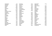 Kommune Kommune Betrag in € Kommune Betrag in € Hiddenhausen 150 € Kaarst 203 € Lage 170 € Hilchenbach 170 € Kalkar 180 € Langenberg 110 € Hilden 170 € Kall 100 € Langenfeld (Rhld.) 116 € Hille 130 € Kalletal k. A. Langerwehe 180 € Holzwickede 150 € Kamen 150 € Legden k. A. Hopsten 140 € Kamp-Lintfort 165 € Leichlingen (Rhld.) 170 € Horn-Bad Meinberg 185 € Kempen 180 € Lemgo 105 € Hörstel 197 € Kerken 170 € Lengerich 180 € Horstmar 170 € Kerpen 185 € Lennestadt 45 € Hövelhof 165 € Kevelaer 72 € Leopoldshöhe 170 € Höxter 185 € Kierspe 109 € Leverkusen 180 € Hückelhoven 170 € Kirchhundem 40 € Lichtenau 55 € Hückeswagen 170 € Kirchlengern 140 € Lienen 191 € Hüllhorst 100 € Kleve 170 € Lindlar 190 € Hünxe 120 € Köln 180 € Linnich 180 € 1 Hürtgenwald 170 € Königswinter 180 € Lippetal Hürth 180 € Korschenbroich 160 € Lippstadt 170 € Ibbenbüren 191 € Kranenburg 160 € Lohmar 170 € Inden 190 € Krefeld 170 € Löhne 170 € Iserlohn 150 € Kreuzau 130 € Lotte 60 € Isselburg 180 € Kreuztal k. A. Lübbecke 75 € Issum 125 € Kürten 191 € Lüdenscheid 171 € Jüchen 140 € Ladbergen 120 € Lüdinghausen 180 € Jülich 75 € Laer 180 € Lügde 185 €