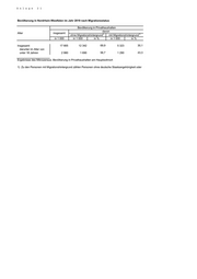 A n l a g e 2 1 Bevölkerung in Nordrhein-Westfalen im Jahr 2019 nach Migrationsstatus Bevölkerung in Privathaushalten davon Alter insgesamt 1) 1) ohne Migrationshintergrund mit Migrationshintergrund in 1 000 in 1 000 in % in 1 000 in % Insgesamt 17 665 12 342 69,9 5 323 30,1 darunter im Alter von unter 18 Jahren 2 980 1 690 56,7 1 290 43,3 Ergebnisse des Mikrozensus. Bevölkerung in Privathaushalten am Hauptwohnort 1) Zu den Personen mit Migrationshintergrund zählen Personen ohne deutsche Staatsangehörigkeit oder