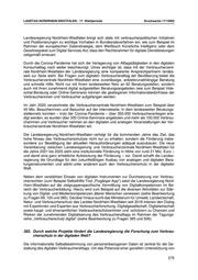 LANDTAG NORDRHEIN-WESTFALEN - 17. Wahlperiode Drucksache 17/15002 Die Landesregierung hat sich bereits im Entstehungsprozess der Rechtsakte eingebracht. So hat die Landesregierung an der allgemeinen Konsultation „Legislativpaket über digitale Dienste: öffentliche Konsultation“ der Europäischen Kommission teilgenommen. Das Ministe- rium für Wirtschaft, Innovation, Digitalisierung und Energie des Landes Nordrhein-Westfalen hat zudem an der Roadmap-Konsultation „Digital Services Act package: Ex ante regulatory instrument for large online platforms with significant network effects acting as gate-keepers in the European Union’s internal market“ teilgenommen. Ebenfalls wurde die Position der Lan- desregierung in die entsprechenden Bundesrats-Verfahren eingebracht. Bei den vorgenannten Initiativen hat die Landesregierung stets das Ziel verfolgt, dass mit den neuen Rechtsakten keine Hindernisse für die Entstehung neuer Geschäftsmodelle entstehen. Generell berücksichtigt die Landesregierung dieses Ziel bei der Bewertung neuer und der Eva- luierung bestehender Gesetze. Die Landesregierung hat zudem das „Gesetz zur Änderung des Straßenverkehrsgesetzes und des Pflichtversicherungsgesetzes“ (Gesetz zum autonomen Fahren) der Bundesregierung im Rahmen des Bundesratsverfahrens konstruktiv unterstützt. Das Gesetz, das am 28.07.2021 in Kraft getreten ist, wird von der Landesregierung ausdrücklich begrüßt, da hiermit insbeson- dere die Technologien des führerlosen Fahrens in festgelegten Betriebsbereichen auf öffentli- chen Straßen eingehend erprobt, weiterentwickelt und in den Realbetrieb gebracht werden können. 379. Wie oft hat der Beirat Digitale Wirtschaft seit 2017 getagt? Der Beirat Digitale Wirtschaft tagt zweimal jährlich, jeweils zur Jahresmitte und zum Jahres- ende. Somit hat der Beirat in der aktuellen Legislaturperiode sieben Mal getagt (Stichtag: 30. Juni 2022). 380. Welche Themen wurden in den einzelnen Sitzungen jeweils behandelt? Die folgenden Themen wurden bislang vom Beirat Digitale Wirtschaft in der laufenden Legis- laturperiode behandelt: • Digitalstrategie: alle Sitzungen • Digitalisierung der Wirtschaft: alle Sitzungen • Blockchain: 3. Sitzung • Corona-Pandemie: 5. Sitzung • Cybersecurity: 1. Sitzung, 4. Sitzung • Data Science/Künstliche Intelligenz: 6. Sitzung, 7. Sitzung • Digital-Gipfel 2019 in Dortmund: 4. Sitzung • Digitale Business-to-Business(B2B)-Plattformen: 4. Sitzung, 6. Sitzung • Digitale Bildung: 1. Sitzung, 6. Sitzung, 7. Sitzung • Förderprogramm Mittelstand.Innovativ & Digital: 4. Sitzung, 5. Sitzung • GAIA-X: 4. Sitzung • Marketing: Nordrhein-Westfalen als digitaler Standort (Leuchttürme und Stärken): 1. Sitzung, 2. Sitzung, 5. Sitzung • Programm DWNRW-Hubs: 2. Sitzung • Programm Scale-up.NRW: 6. Sitzung • Venture Capital / Finanzierung: 1. Sitzung, 4. Sitzung 272
