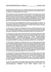 LANDTAG NORDRHEIN-WESTFALEN - 17. Wahlperiode Drucksache 17/15002 Kernelement dieser Kampagne ist eine im Landesverwaltungsnetz (LVN) verfügbare Webseite mit spezifischen Inhalten zu verschiedenen Themen im Bereich der Informationssicherheit (un- ter anderem auch Identitätsdiebstahl und Phishing). Über die Kampagne werden, neben elektronischen Angeboten, themenbasierte Flyer, Plakate oder Kalender an interessierte Behörden und Einrichtungen in der Landesverwaltung bereit- gestellt. Die Behörden und Einrichtungen der Landesverwaltung Nordrhein-Westfalen können sich zudem bei der Durchführung eigener Sensibilisierungskampagnen durch die zentrale Kampagne unterstützen lassen. Dieses Angebot haben in den vergangenen Jahren 15 Behör- den und Einrichtungen abgerufen. Die zentrale Kampagne stellt jedes Jahr sogenannte „Live- Hacking-Veranstaltungen“ im Rahmen des landesweiten Schulungsangebots bereit. Das Thema Phishing sowie Identitätsdiebstahl ist seit Anfang der Kampagne mit enthalten, hat in den Jahren 2019 bis 2021 gleichwohl eine schwerpunktmäßige Behandlung erfahren. Die nachfolgenden Ausführungen zu den Maßnahmen in einzelnen Jahren geben die verfügba- ren bzw. einzeln differenzierbaren Daten wieder: Im Jahr 2017 sind im Rahmen der Kampagne diverse Flyer und Plakate erstellt sowie Inhalte auf der Webseite hinzugefügt worden. Es wurden 21 Live-Hacking-Veranstaltungen mit insge- samt 1.564 Teilnehmenden durchgeführt. Die bezifferbaren Gesamtkosten für die landesweite Kampagne einschließlich der Schulungsveranstaltungen beliefen sich auf 88.685,67 Euro. Im Jahr 2018 sind im Rahmen der Kampagne diverse Flyer und Plakate erstellt sowie Inhalte auf der Webseite hinzugefügt worden. Es wurden 39 Live-Hacking-Veranstaltungen mit insge- samt 1.679 Teilnehmenden durchgeführt. Ferner wurden Kalender erstellt und ein Informati- onssicherheitstag beim Landesbetrieb Information und Technik Nordrhein-Westfalen (IT.NRW) durchgeführt, an dem auch weitere Beschäftigte aus der Landesverwaltung Nord- rhein-Westfalen teilgenommen haben. Die bezifferbaren Gesamtkosten für die landesweite Kampagne einschließlich der Schulungsveranstaltungen beliefen sich auf 130.952,68 Euro. Im Jahr 2019 sind im Rahmen der Kampagne diverse Flyer und Plakate erstellt sowie Inhalte auf der Webseite hinzugefügt worden. Es wurden 24 Live-Hacking-Veranstaltungen mit insge- samt 1.242 Teilnehmenden durchgeführt. Ferner wurden Kalender erstellt und Informationssi- cherheitstage bei der Staatskanzlei des Landes Nordrhein-Westfalen, dem Ministerium für Wirtschaft, Innovation, Digitalisierung und Energie des Landes Nordrhein-Westfalen, dem Mi- nisterium für Arbeit, Gesundheit und Soziales des Landes Nordrhein-Westfalen sowie dem Mi- nisterium für Heimat, Kommunales, Bau und Gleichstellung des Landes Nordrhein-Westfa- len durchgeführt. Die bezifferbaren Gesamtkosten für die landesweite Kampagne einschließ- lich der Schulungsveranstaltungen beliefen sich auf 126.512,05 Euro. Im Jahr 2020 sind im Rahmen der Kampagne diverse Flyer und Plakate erstellt sowie Inhalte auf der Webseite hinzugefügt worden. Es wurden 4 Live-Hacking-Veranstaltungen mit insge- samt 300 Teilnehmenden durchgeführt. Ferner wurden Kalender erstellt. Ein geplanter Infor- mationssicherheitstag beim Landesbetrieb Information und Technik Nordrhein-Westfalen (IT.NRW) konnte pandemiebedingt nicht durchgeführt werden. Die bezifferbaren Gesamtkos- ten für die landesweite Kampagne einschließlich der Schulungsveranstaltungen beliefen sich auf 135.211,23 Euro. Im Jahr 2021 sind im Rahmen der Kampagne bisher diverse Flyer und Plakate erstellt sowie Inhalte auf der Webseite hinzugefügt worden. Pandemiebedingt wurden bisher keine Live-Ha- cking-Veranstaltungen durchgeführt. Ferner wurden Kalender erstellt. Ein 285