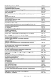 dia.Leben Michaelshoven gGmbH 5.154,01 € IWK gGmbH Delmenhorst 9.347,34 € Caritasverband Rhein-Erft-Kreis e.V. 4.594,45 € Bethlehem Gesundheitszentrum Stolberg gGmbH 11.054,02 € Klinikum Oberberg GmbH 10.657,92 € Josefs-Gesellschaft 4.672,97 € Gemeinschaftskrankenhaus Bonn St. Elisabeth St. Petrus St. Johannes 5.203,36 € gGmbH Hermann-Josef-Stiftung 3.111,85 € Klinikum Leverkusen 6.253,15 € Kreiskrankenhaus Mechernich GmbH 4.950,96 € Marien-Hospital Euskirchen 4.894,70 € St. Katharinen-Hospital GmbH 3.722,08 € St. Elisabeth-Krankenhaus Geilenkirchen gemeinnützige Gesellschaft mbH 8.825,93 € St. Elisabeth-Krankenhaus GmbH 8.658,74 € LVR-Klinik Bonn 6.871,10 € Krankenhaus Porz am Rhein gGmbH 6.253,53 € St. Marien-Hospital gGmbH 11.121,07 € Uniklinik RWTH Aachen AöR 28.040,98 € gomedis Physio Akademie GbR Sabine Heimerdinger und Jutta Michels 4.850,72 € IB Gesellschaft für interdisziplinäre Studien gGmbH (GIS) 12.335,82 € Kliniken der Stadt Köln gGmbH 12.369,63 € Institut für Pflege und Soziales, Korporatives Mitglied der 31.449,23 € Arbeiterwohlfahrt Johanniter-Unfall-Hilfe e. V. Johanniter-Akademie Bildungsinstitut Nordrhein-Westfalen; Standort 7.765,38 € Münster Karl-Borromäus-Schule für Gesundheitsfachberufe gGmbH 17.277,82 € MVZ CDT Strahleninstitut GmbH 2.817,53 € Präha Akademie gGmbH 7.676,80 € IAV GmbH- Institut für berufliche Qualifizierung Voreifel GmbH 1.012,70 € Louise von Marillac-Schule Träger GmbH 25.426,46 € Berufsfortbildungswerk, gemeinnützige Bildungseinrichtung des DGB 19.795,15 € GmbH (bfw) RBZ Rheinisches Bildungszentrum Köln gGmbH 14.912,27 € St. Franziskus Krankenhaus GmbH 557,55 € Apothekerverband Aachen e.V. 4.246,74 € DAA Deutsche Angestellten-Akademie GmbH 10.712,63 € Sieg Reha GmbH 1.728,42 € LVR Klinik Düren 3.394,85 € Fachklinik 360° GmbH 3.658,76 € Rhein-Maas Klinikum GmbH 6.307,66 € VDAB Bildungswerk gGmbH 53.948,29 € TÜV Rheinland Akademie GmbH 9.506,17 € VFA Verein zur Förderung der Altenpflege und sozialer Angelegenheiten 27.172,24 € e.V. Wegen & Borkenhagen Partnerschaft Physiotherapeuten 3.735,75 € Siftung Mathias Spital Rheine 22.251,43 € Seite 21 von 22