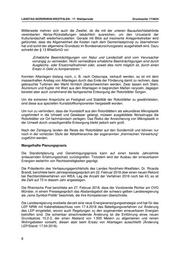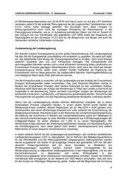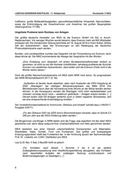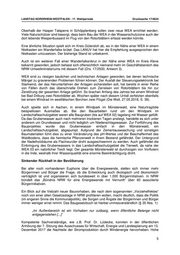 LANDTAG NORDRHEIN-WESTFALEN - 17. Wahlperiode Drucksache 17/4634 Oberhalb der Hasper Talsperre in Schöpplenberg sollen zwei neue WEA errichtet werden. Viele Naturschützer sind besorgt, dass beim Bau der WEA in der Wasserschutzzone auch der dort lebende Wespenbussard im Flug von den Rotorblättern erfasst werden könnte. Eine ähnliche Situation spielt sich im Kreis Gütersloh ab, wo in der Nähe einer WEA in einem Nistkasten ein Wanderfalke brütet. Das LANUV hat hier die Empfehlung ausgesprochen den Nistkasten umzusetzen. Der bisherige Stand ist unbekannt. Auch ist ein weiterer Fall einer Wanderfalkenbrut in der Nähe einer WEA im Kreis Kleve bekannt geworden, jedoch befasst sich offensichtlich niemand mehr im Geschäftsbereich des NRW-Umweltministeriums mit diesem Fall (Drs. 17/2500, Antwort 3). WEA sind zu riesigen baulichen und technischen Anlagen geworden, bei denen technische Mängel zu gravierenden Problemen führen können. Der Ausfall der Steuerungselektronik bei Starkwind, der das Herunterfahren der Anlagen sicherstellen soll, hat bereits in einer Reihe von Fällen durch das überschnelle Drehen zum Zerreisen von Rotorblättern bis hin zur Zerstörung der gesamten Anlage geführt. So brachen Anfang des Jahres bei einem Windrad bei Bad Driburg zwei Rotorblätter ab. Wochen später nach diesem Unfall zerfetzten ebenfalls bei einem Windrad im westfälischen Borchen zwei Flügel (Die Welt, 27.05.2018, S. 39). Auch spielte sich in Aachen, in einem Windpark im Münsterwald, eine Naturtragödie beispiellosen Ausmaßes ab. Bei den Bauarbeiten rund um den Windpark im Landschaftsschutzgebiet waren alle Baugruben (bis auf WEA 02) tagelang mit Wasser gefüllt. Da das Grubenwasser auch nach mehreren trockenen Tagen ansteigt, handelte es sich unter anderem um Grundwasser und nicht lediglich um Niederschlagswasser. Zur Fortführung des Bauprojektes wurde das Grubenwasser einfach in den Münsterwald, ein Landschaftsschutzgebiet, abgepumpt. Aufgrund der Zementauswaschung und sonstigen Baumaterialien führt dies zu einer Veränderung des pH-Wertes und der Beschaffenheit des Waldbodens, dass die heimische Pflanzenwelt in ihrem Bestand gefährdet. Der Untergrund der Nadelholzbäume als Flachwurzler droht ausgeschwemmt zu werden. Auch gefährdet die Einbringung des Grubenwassers in das Landschaftsschutzgebiet die Tierwelt, da nahe der WEA 03 ein natürlicher Teich liegt. Der gesamte Münsterwald ist durchzogen von Vorflutern in die Inde, weshalb ihrer Wasserqualität eine enorme Beeinträchtigung droht. Sinkender Rückhalt in der Bevölkerung Bei aller noch vorhandenen Euphorie über die Energiewende, stellen sich immer mehr Bürgerinnen und Bürger die Frage, ob die Entwicklung auch ökologisch und ökonomisch verträglich ist und organisieren sich bundesweit in über 1.000 Bürgerinitiativen. In NRW bündelt das „Bündnis NRW für eine Energiewende mit Vernunft“ über 60 assoziierte Bürgerinitiativen. Ein Blick auf die Vielzahl neuer Bauvorhaben, die nach dem sogenannten „Vorzieheffektes“ noch von einer alten Gesetzeslage in NRW profitieren wollen, macht deutlich, dass die Politik (im engeren Sinne die Kommunalpolitik), die Sorgen und Ängste der Bürgerinnen und Bürger immer weniger ernst nimmt. Das Baugesetzbuch ist hierbei unmissverständlich (§ 35 Abs. 1): „Im Außenbereich ist ein Vorhaben nur zulässig, wenn öffentliche Belange nicht entgegenstehen [...]“ Kompetente Sachverständige, wie z.B. Prof. Dr. Lüdecke, konnten in der öffentlichen Anhörung der 7. Sitzung des Ausschusses für Wirtschaft, Energie und Landesplanung am 13. Dezember 2017 die Nachteile der Stromproduktion durch Windenergie hervorheben: Hohe 5