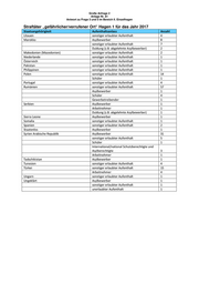 Große Anfrage 2 Anlage Nr. 82 Antwort zu Frage 3 und 5 im Bereich II. Einzelfragen Straftäter „gefährlicher/verrufener Ort“ Hagen 2 für das Jahr 2017 Staatsangehörigkeit Aufenthaltsanlass Anzahl Ukraine Tourist/Durchreisender 1 Ungeklärt sonstiger erlaubter Aufenthalt 3