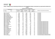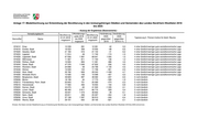Anlage 18: Modellrechnung zur Entwicklung der Bevölkerung in den kreisangehörigen Städten und Gemeinden des Landes Nordrhein-Westfalen 2018 bis 2030 - Auszug der Ergebnisse (Basisvariante) - Verwaltungsbezirk Wanderungs- Veränderung Veränderung Bevölkerung Bevölkerung saldo 2018 2030 2030 01.01.2018 01.01.2030 Typisierung lt. Thünen-Institut für ländl. Räume Kennziffer Name bis 2030 gegenüber gegenüber insgesamt insgesamt insgesamt 2018 2018 in % 378016 Leichlingen (Rhld.), Stadt 28 166 3 193 29 069 903 3,2 5 nicht ländlich 378020 Odenthal 15 068 490 14 989 - 79 -0,5 5 nicht ländlich 378024 Overath, Stadt 27 062 - 69 26 350 - 712 -2,6 5 nicht ländlich 378028 Rösrath, Stadt 28 666 2 689 30 327 1 661 5,8 5 nicht ländlich 378032 Wermelskirchen, Stadt 34 705 1 138 33 519 -1 186 -3,4 5 nicht ländlich 382004 Alfter 23 527 1 317 24 742 1 215 5,2 5 nicht ländlich 382008 Bad Honnef, Stadt 25 708 2 285 25 517 - 191 -0,7 5 nicht ländlich 382012 Bornheim, Stadt 48 173 5 538 52 567 4 394 9,1 5 nicht ländlich 382016 Eitorf 18 671 567 17 769 - 902 -4,8 5 nicht ländlich 382020 Hennef (Sieg), Stadt 47 293 3 544 49 769 2 476 5,2 5 nicht ländlich 382024 Königswinter, Stadt 41 050 3 268 42 122 1 072 2,6 5 nicht ländlich 382028 Lohmar, Stadt 30 451 1 530 31 371 920 3,0 5 nicht ländlich 382032 Meckenheim, Stadt 24 661 2 240 26 273 1 612 6,5 5 nicht ländlich 382036 Much 14 319 734 14 626 307 2,1 5 nicht ländlich 382040 Neunkirchen-Seelscheid 19 758 19 18 988 - 770 -3,9 5 nicht ländlich 382044 Niederkassel, Stadt 38 057 3 918 41 206 3 149 8,3 5 nicht ländlich 382048 Rheinbach, Stadt 27 124 860 27 012 - 112 -0,4 5 nicht ländlich 382052 Ruppichteroth 10 449 873 10 790 341 3,3 5 nicht ländlich 382056 Sankt Augustin, Stadt 55 873 3 657 58 989 3 116 5,6 5 nicht ländlich 382060 Siegburg, Stadt 41 326 4 452 44 611 3 285 7,9 5 nicht ländlich 382064 Swisttal 18 558 756 18 794 236 1,3 5 nicht ländlich 382068 Troisdorf, Stadt 74 870 5 651 79 545 4 675 6,2 5 nicht ländlich 382072 Wachtberg 20 251 1 277 21 024 773 3,8 5 nicht ländlich 382076 Windeck 18 937 489 17 949 - 988 -5,2 5 nicht ländlich 554004 Ahaus, Stadt 39 185 -1 253 37 998 -1 187 -3,0 3 eher ländlich/gute sozioökonomische Lage 554008 Bocholt, Stadt 71 036 218 68 675 -2 361 -3,3 3 eher ländlich/gute sozioökonomische Lage 554012 Borken, Stadt 42 509 362 42 252 - 257 -0,6 3 eher ländlich/gute sozioökonomische Lage 554016 Gescher, Stadt 17 253 - 215 16 976 - 277 -1,6 3 eher ländlich/gute sozioökonomische Lage 554020 Gronau (Westf.), Stadt 47 671 2 847 50 143 2 472 5,2 3 eher ländlich/gute sozioökonomische Lage 554024 Heek 8 563 68 8 629 66 0,8 3 eher ländlich/gute sozioökonomische Lage 554028 Heiden 8 182 298 8 325 143 1,7 3 eher ländlich/gute sozioökonomische Lage 554032 Isselburg, Stadt 10 713 - 747 9 570 -1 143 -10,7 3 eher ländlich/gute sozioökonomische Lage