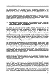 LANDTAG NORDRHEIN-WESTFALEN - 17. Wahlperiode Drucksache 17/8469 Die Medienkonvergenz bringt übrigens nicht nur für die gedruckte Tageszeitung große Herausforderungen mit sich, sondern auch für andere etablierte Mediengattungen wie das Radio und das Fernsehen. Non-lineare Angebote werden für die Nutzerinnen und Nutzer immer interessanter und erhöhen über alle Ausspielwege hinweg den Veränderungsdruck. Die zentrale Herausforderung liegt darin, dass die gewachsenen und bei uns in Nordrhein- Westfalen verwurzelten Anbieterinnen und Anbieter von Journalismus in der neuen Online- Welt mit innovativen Geschäfts- und Erlösmodellen ihren Platz finden, gerade auch im Wettbewerb mit neuen starken Akteuren wie Facebook und Co. 77. Welche aktuellen Entwicklungen sind der Landesregierung zum Thema des „Paid Content“ bekannt, und welche Bezahlsysteme haben sich bei den nordrhein-westfälischen Verlagen etabliert? Die meisten der in Nordrhein-Westfalen verlegten Zeitungen setzen inzwischen auf das sogenannte Freemium-Modell. Dabei gibt es Artikel, die kostenlos („free“) zu lesen sind, und exklusive, kostenpflichtige Inhalte. Solche Artikel sind häufig mit dem jeweiligen Logo der Zeitung und einem Plus gekennzeichnet. Welche Art(en) von Artikeln hinter die Bezahlschranke fallen, lässt sich nicht eindeutig für alle Zeitungen bestimmen. Bei den Zeitungen des Medienhauses DuMont befinden sich hauptsächlich Hintergrundartikel oder Nutzwertgeschichten hinter der Bezahlschranke (vgl. Hein, 2019b). DuMont hat erst 2019 bei beiden seiner Kölner Zeitungen kostenpflichtige Inhalte auf deren Websites eingeführt (ebd.). Darüber hinaus haben auch viele weitere Zeitungen seit der letzten Antwort ihren vorher freien Zugang zu Online-Inhalten eingeschränkt, indem sie ein Freemium-Modell eingeführt haben. Das Abonnement für einen Zugang zu exklusiven Inhalten wird normalerweise monatsweise, wochenweise oder über einen Tagespass abgeschlossen. Das Freemium Modell hat damit seit 2016 auch das „Metered Modell“ als Paid Content Modell bei fast allen Zeitungen in Nordrhein-Westfalen ersetzt. Bei dem Metered Modell haben Nutzerinnen und Nutzer entweder eine festgelegte Anzahl von Artikeln oder eine bestimmte Zeit, in der sie kostenlos online Artikel lesen können. Ab dann fällt erst die Bezahlschranke und Nutzerinnen und Nutzer werden zum Abschließen eines Abos aufgefordert. In Nordrhein- Westfalen verfolgt nur noch die Westdeutsche Zeitung diese Paid-Content-Strategie. Besucher auf der Seite der Westdeutschen Zeitung haben 3 Minuten Zeit alle Online-Artikel zu lesen. Danach muss auch dort entweder ein Tagespass oder ein Abonnement erworben werden, um überhaupt noch Inhalte zu lesen. Nur noch wenige Zeitungen bieten alle Inhalte auf ihren Websites komplett kostenlos an. Noch seltener befinden sich ausnahmslos alle Inhalte auf den Websites der Zeitungen hinter der Bezahlschranke, die nur mit einem Abonnement des E-Papers oder der Printversion gehoben werden kann. Hingegen ist die Zahl der Freemium-Modelle in Nordrhein-Westfalen von 8 im Jahr 2016 auf 24 heute angestiegen. Der Zugang zu den exklusiven Inhalten wird hauptsächlich auf zwei Arten ermöglicht. Häufig erfolgt der Zugang in Zusammenhang mit dem Abonnement des E-Papers der jeweiligen Zeitung. In vielen Fällen gibt es neben dem E-Paper-Abo aber auch ein zusätzlich buchbares Abo, mit dem alle ausschließlich auf der Internetseite beworbenen („Plus“-)Artikel lesbar werden. In solchen Fällen sind die kostenpflichtigen auf der Internetseite befindlichen („Plus“- )Artikel im E-Paper-Abo entweder bereits inkludiert oder müssen noch extra unabhängig vom E-Paper-Zugang hinzugebucht werden. Einige Zeitungen bieten ihren Print-Abonnenten ebenfalls einen Zugang für die ansonsten exklusiven Artikel auf ihren Internetseiten (z. B. Kölner Rundschau). Fast alle Zeitungen versuchen, Neukundinnen und -kunden mithilfe von 301