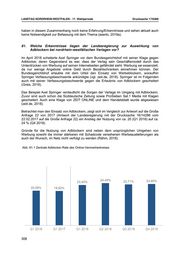 LANDTAG NORDRHEIN-WESTFALEN - 17. Wahlperiode Drucksache 17/8469 haben in diesem Zusammenhang noch keine Erfahrung/Erkenntnisse und sehen aktuell auch keine Notwendigkeit zur Befassung mit dem Thema (aserto, 2019a). 81. Welche Erkenntnisse liegen der Landesregierung zur Auswirkung von Adblockern bei nordrhein-westfälischen Verlagen vor? Im April 2018 scheiterte Axel Springer vor dem Bundesgerichtshof mit seiner Klage gegen Adblocker, deren Gegenstand es war, dass der Verlag sein Geschäftsmodell durch das Unterdrücken von Werbung auf seinen Internetseiten gefährdet sieht. Werbung sei essenziell, da nur wenige Angebote online Geld durch Bezahlschranken einnehmen können. Der Bundesgerichtshof erlaubte mit dem Urteil den Einsatz von Werbeblockern, woraufhin Springer Verfassungsbeschwerde ankündigte (vgl. zeit.de, 2018). Springer ist im Folgenden auch mit seiner Verfassungsbeschwerde gegen die Erlaubnis von Adblockern gescheitert (Greis, 2019). Das Beispiel Axel Springer verdeutlicht die Sorgen der Verlage im Umgang mit Adblockern. Zuvor sind auch schon die Süddeutsche Zeitung sowie ProSieben Sat.1 Media mit Klagen gescheitert. Auch eine Klage von ZEIT ONLINE und dem Handelsblatt wurde abgewiesen (zeit.de, 2018). Betrachtet man den Einsatz von Adblockern, zeigt sich im Vergleich zur Antwort auf die Große Anfrage 22 von 2017 (Antwort der Landesregierung mit der Drucksache 16/14296 vom 22.02.2017 auf die Große Anfrage 22) ein Anstieg der Nutzung von ca. 20 (Q1 2016) auf ca. 24 % (Q4 2018). Gründe für die Nutzung von Adblockern sind neben dem ursprünglichen Umgehen von Werbung sowohl die immer stärkeren mit Schadcode versehenen Werbeauslieferungen als auch der Wunsch, im Netz nicht verfolgt zu werden (Rähm, 2018). Abb. 81.1 Zentrale Adblocker-Rate des Online-Vermarkterkreises 308