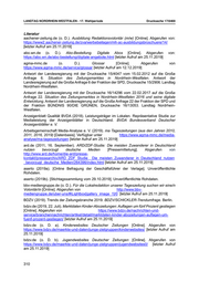 LANDTAG NORDRHEIN-WESTFALEN - 17. Wahlperiode Drucksache 17/8469 Literatur aachener-zeitung.de (o. D.). Ausbildung Redaktionsvolontär (m/w) [Online]. Abgerufen von: https://www2.aachener-zeitung.de/zva/werbebeilagen/mh-ac-ausbildungsbroschuere/14/ [letzter Aufruf am 25.11.2019] abo.wn.de (o. D.). Abo-Bestellung. Digitale Abos [Online]. Abgerufen von: https://abo.wn.de/abo-bestellung/digitale-angebote.html [letzter Aufruf am 25.11.2019] agma-mmc.de (o. D.). Glossar [Online]. Abgerufen von https://www.agma-mmc.de/service/glossar [letzter Aufruf am 12.12.2019] Antwort der Landesregierung mit der Drucksache 15/4047 vom 15.02.2012 auf die Große Anfrage 6. Situation des Zeitungsmarktes in Nordrhein-Westfalen. Antwort der Landesregierung auf die Große Anfrage 6 der Fraktion der SPD, Drucksache 15/2906. Landtag Nordrhein-Westfalen. Antwort der Landesregierung mit der Drucksache 16/14296 vom 22.02.2017 auf die Große Anfrage 22. Situation des Zeitungsmarktes in Nordrhein-Westfalen 2016 und seine digitale Entwicklung. Antwort der Landesregierung auf die Große Anfrage 22 der Fraktion der SPD und der Fraktion BÜNDNIS 90/DIE GRÜNEN, Drucksache 16/13053. Landtag Nordrhein- Westfalen. Anzeigenblatt Qualität BVDA (2018). Leistungsträger im Lokalen. Repräsentative Studie zur Medialeistung der Anzeigenblätter in Deutschland. BVDA Bundesverband Deutscher Anzeigenblätter e. V. Arbeitsgemeinschaft Media-Analyse e. V. (2019). ma Tageszeitungen (aus den Jahren 2010, 2011, 2016, 2019) [Datenbasis]. Verfügbar unter https://www.agma-mmc.de/media- analyse/ma-tageszeitungen [letzter Aufruf am 25.11.2019] ard.de (2011, 16. September). ARD/ZDF-Studie: Die meisten Zuwanderer in Deutschland nutzen bevorzugt deutsche Medien [Pressemitteilung]. Abgerufen von http://www.ard.de/home/die-ard/presse- kontakt/pressearchiv/ARD_ZDF_Studie__Die_meisten_Zuwanderer_in_Deutschland_nutzen _bevorzugt_deutsche_Medien/264396/index.html [letzter Aufruf am 25.11.2019] aserto (2019a). [Online Befragung der Geschäftsführer der Verlage]. Unveröffentlichte Rohdaten. aserto (2019b). [Stichtagssammlung vom 29.10.2019]. Unveröffentlichte Rohdaten. bbv-mediengruppe.de (o. D.). Für die Lokalredaktion unserer Tageszeitung suchen wir eine/n Volontär/in [Online]. Abgerufen von http://www.bbv- mediengruppe.de/uber-uns/#iLightbox[gallery_image_1]/0 [letzter Aufruf am 25.11.2019] BDZV (2019). Trends der Zeitungsbranche 2019. BDZV/SCHICKLER-Trendumfrage. Berlin. bdzv.de (2019, 22. Juli). Marktdaten Kinder-Abozeitungen: Auflagen um fünf Prozent gestiegen [Online]. Abgerufen von https://www.bdzv.de/nachrichten-und- service/branchennachrichten/artikel/detail/marktdaten-kinder-abozeitungen-auflagen-um- fuenf-prozent-gestiegen/ [letzter Aufruf am 25.11.2019] bdzv.de (o. D. a). Kinderwebsites Deutscher Zeitungen [Online]. Abgerufen von https://www.bdzv.de/maerkte-und-daten/junge-zielgruppen/kinderwebsites/ [letzter Aufruf am 25.11.2019] bdzv.de (o. D. b). Jugendwebsites Deutscher Zeitungen [Online]. Abgerufen von https://www.bdzv.de/maerkte-und-daten/junge-zielgruppen/jugendwebsites0/ [letzter Aufruf am 25.11.2019] 310