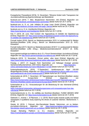 LANDTAG NORDRHEIN-WESTFALEN - 17. Wahlperiode Drucksache 17/8469 Evangelischer Pressedienst (2019j, 14. November). Tillmanns fordert mehr Transparenz bei Journalismusförderung [Agenturmeldung]. epd Basisdienst. facebook.com (2019, 7. Mai). Bergkamener Nachrichten. Info [Online]. Abgerufen von https://www.facebook.com/bergkamener.nachrichten/ [letzter Aufruf am 25.11.2019] facebook.com (o. D. a). Jule: Initiative für junge Leser GmbH [Online]. Abgerufen von https://de-de.facebook.com/jule.news/?ref=page_internal [letzter Aufruf am 25.11.2019] facebook.com (o. D. b). VoisSteinfurt [Online]. Abgerufen von https://www.facebook.com/VoisSteinfurt [letzter Aufruf am 25.11.2019] Feil, F. (2019, 26. Juni). Paid Content: Die Tageszeitung im Zeitalter der Digitalisierung [Online]. Abgerufen von https://www.techtag.de/digitalisierung/paid-content-die-tageszeitung- im-zeitalter-der-digitalisierung/ [letzter Aufruf am 25.11.2019] Formatt Institut (2016). Bericht zur Medienkonzentration 2015. In Landesanstalt für Medien Nordrhein-Westfalen (LfM) (Hrsg.), Bericht zur Medienkonzentration 2015 (S. 6-87). Düsseldorf. Formatt Institut (2017). Bericht zur Medienkonzentration 2016/17. In Landesanstalt für Medien Nordrhein-Westfalen (LfM) (Hrsg.), Medienkonzentrationsbericht 2016/17 (S. 8-85). Düsseldorf. forum-gemeinnuetziger-journalismus.de (o. D.). Forum Gemeinnütziger Journalismus [Online]. Abgerufen von http://forum-gemeinnuetziger-journalismus.de/ [letzter Aufruf am 25.11.2019] freitag.de (2019, 12. November). Einmal zahlen, alles lesen [Online]. Abgerufen von https://www.freitag.de/autoren/hest/einmal-zahlen-alles-lesen [letzter Aufruf am 25.11.2019] Freytag, J. (2017, 21. August). Ruhr Nachrichten und Hellweger Anzeiger gründen Gemeinschaftsunternehmen. DNV Online. Abgerufen von https://www.dnv- online.net/medien/detail.php?rubric=Medien&nr=121420 [letzter Aufruf am 25.11.2019] funkemediasalesnrw.de (2018, 17.September). lokalkompass.de feiert 100.000 BürgerReporter [Online]. Abgerufen von https://funkemediasalesnrw.de/ove-saffe-wird-neuer- geschaeftsfuehrer-der-funke-mediengruppe-2/ [letzter Aufruf am 25.11.2019] funkemedien.de (2018, 7. November). Elf Tageszeitungen aus Nordrhein-Westfalen starten gemeinsame Europa-Serie [Online]. Abgerufen von https://www.funkemedien.de/de/presse/medienmitteilungen/news/Elf-Tageszeitungen-aus- Nordrhein-Westfalen-starten-gemeinsame-Europa-Serie/ [letzter Aufruf am 25.11.2019] funkemedien.de (o. D.). Voraussetzungen für die Bewerbung für das Volontariat [Online]. Abgerufen von https://volontariat.funkemedien.de/bewerbungsprozess-und-voraussetzungen-fuer-das- volontariat/ [letzter Aufruf am 25.11.2019] funkemediennrw.de (o. D.). So vielfältig wie Nordrhein-Westfalen: FUNKE MEDIEN NRW [Online]. Abgerufen von https://www.funkemediennrw.de/ [letzter Aufruf am 25.11.2019] Gebhardt, C., Kramer, I., & Pätzmann, J. U. (2018). Brand loyalty towards quality and tabloid newspapers: A qualitative study exploring the drivers of customer retention. Markenbrand, 7, 47-59. Giesler, M. (2018, 1. Februar). Abo-Dienstleister Steady: Gekommen, um zu bleiben. journalisten-training.de. Abgerufen von https://www.journalisten-training.de/blog/abo- dienstleister-steady-gekommen-um-zu-bleiben/ [letzter Aufruf am 25.11.2019] Google Marketing Plattform (o. D.). Analytics. [Online]. Abgerufen von https://marketingplatform.google.com/intl/de/about/analytics/ [letzter Aufruf am 25.11.2019] 315